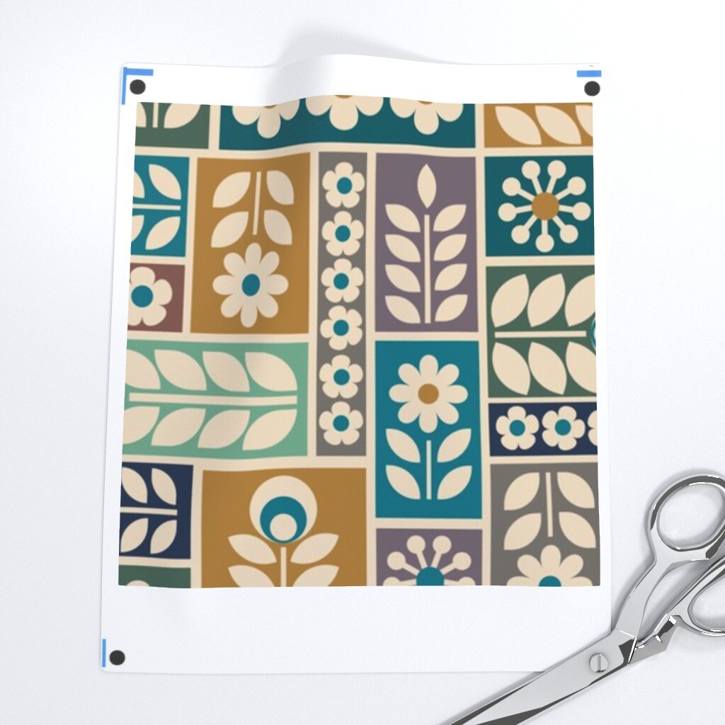 Folk Floral Scandi Botanical Geometric Multicolor Daisy Scandinavian Blue Yellow Custom Removable Wallpaper by Spoonflower Peel & Stick Wallpaper 2FT Wide