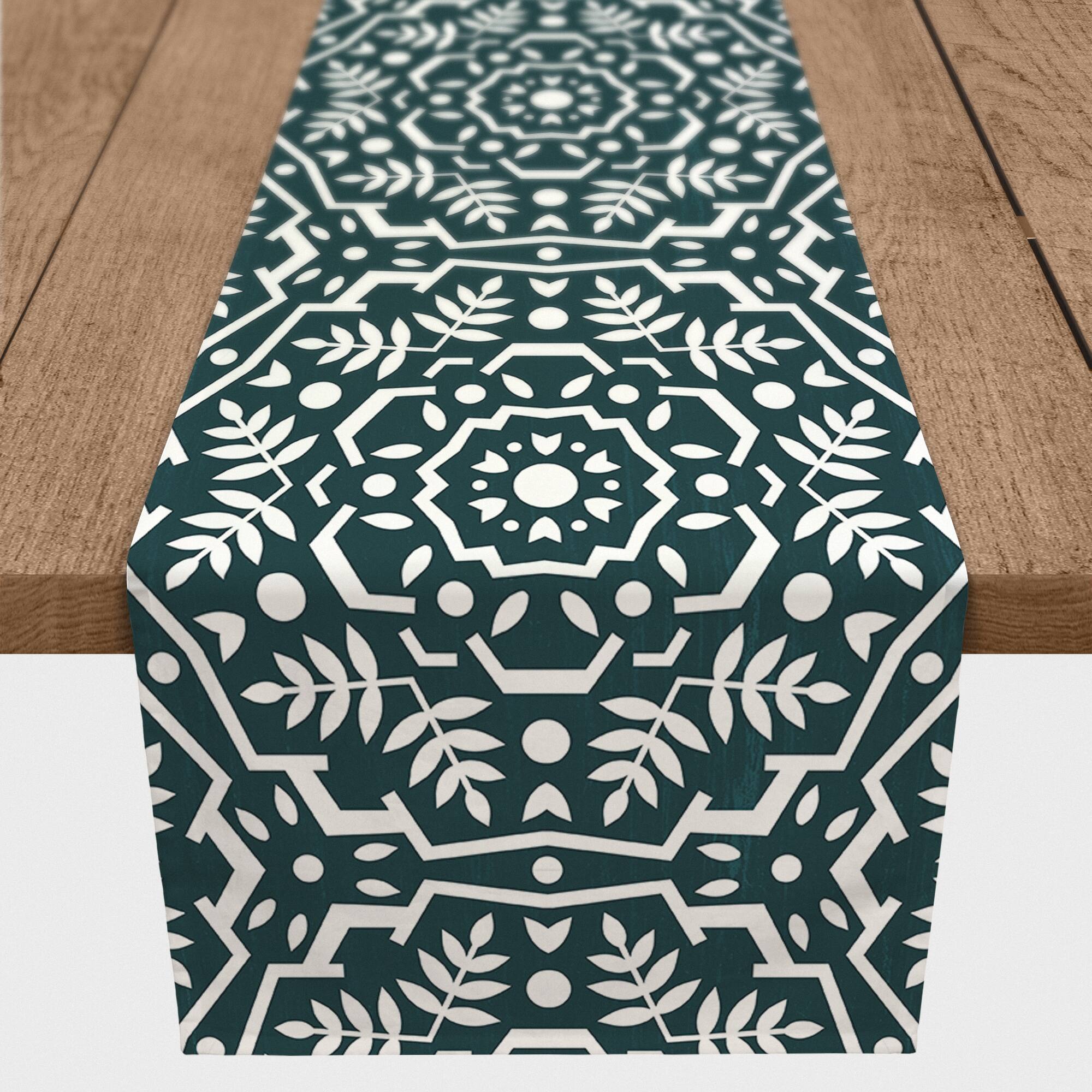 Folk Floral Teal 16" x 72" Cotton Twill Runner