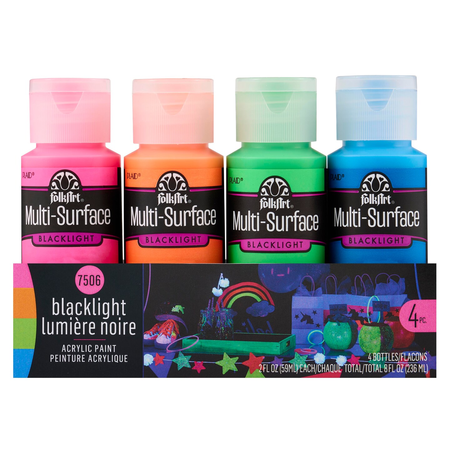 FolkArt ® Multi-Surface Neon Blacklight™ Acrylic Paint Set 4 Color - 7506