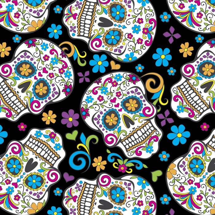 Folkloric Sugar Skulls Black Cotton Fabric | By the Yard | Sewing and Crafting | 44 inches wide