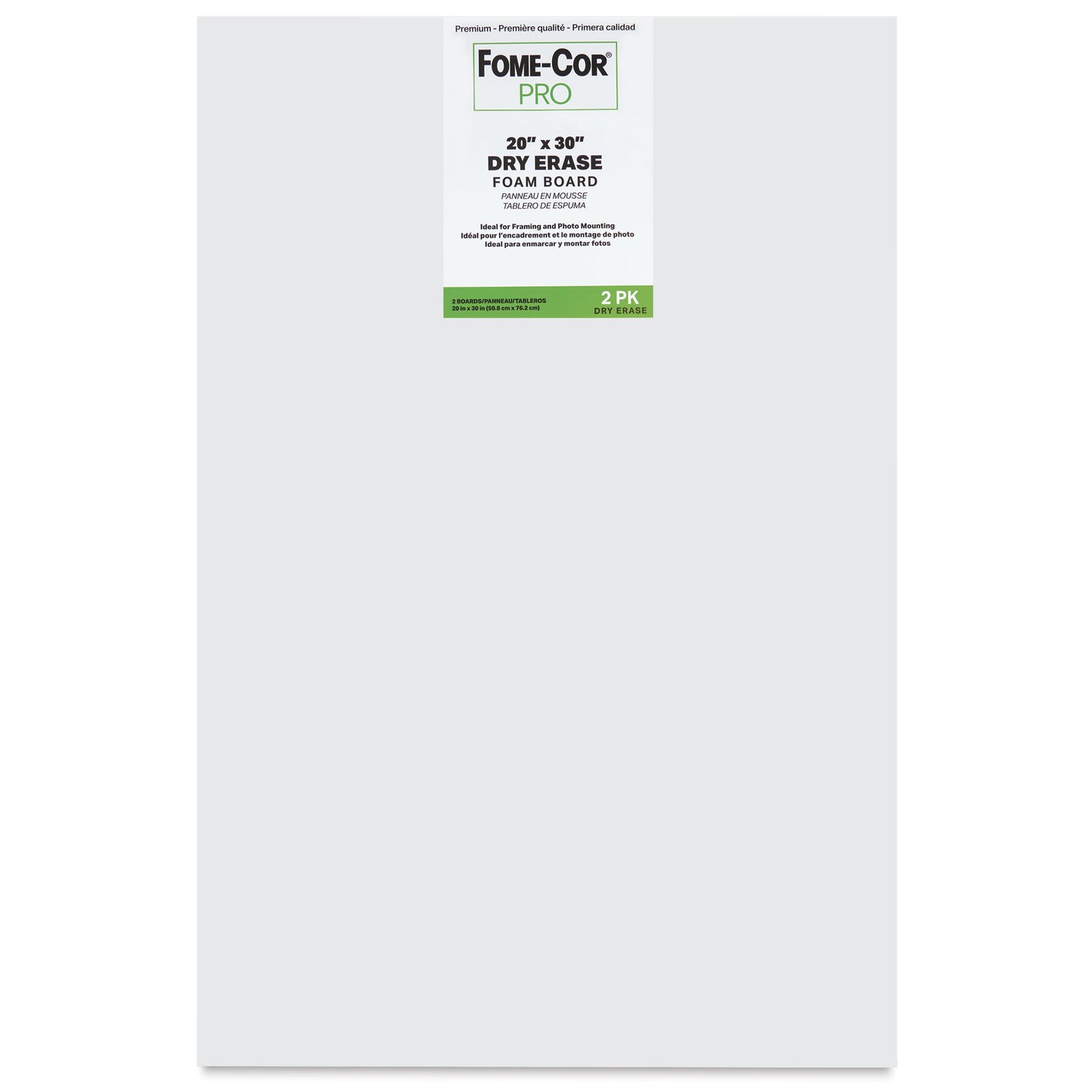 Fome-Cor Pro Specialty Dry Erase Foam Board - 20" x 30" x 3/16", White, Pkg of 2 Sheets