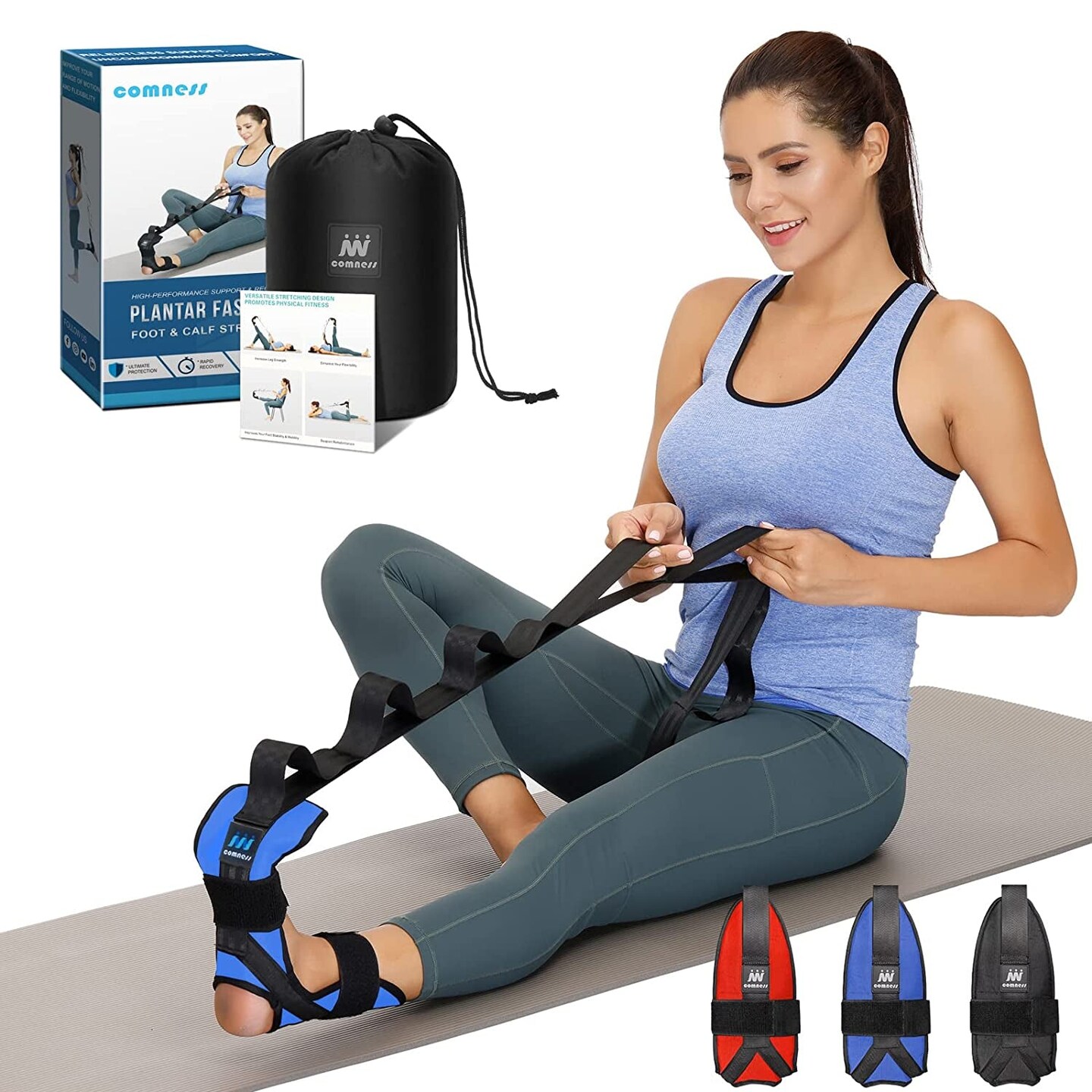 Foot and Calf Stretcher-Stretching Strap for Plantar Fasciitis, Heel Spurs, Foot Drop, Achilles Tendonitis & Hamstring. Yoga Foot & Leg Stretch Strap. (Black)