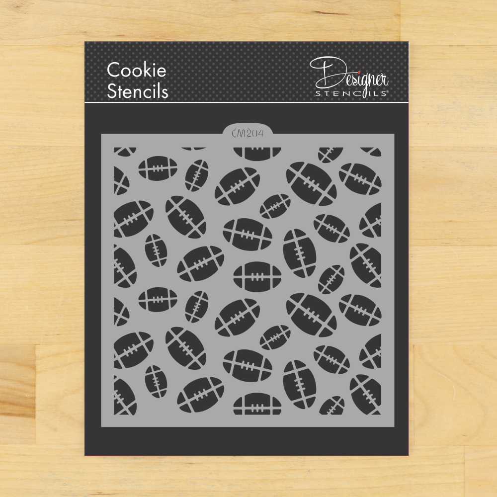 Football Allover Cookie and Craft Stencil | CM204 by Designer Stencils | Cookie Stencils for Royal Icing, Airbrush, Dusting Powder |