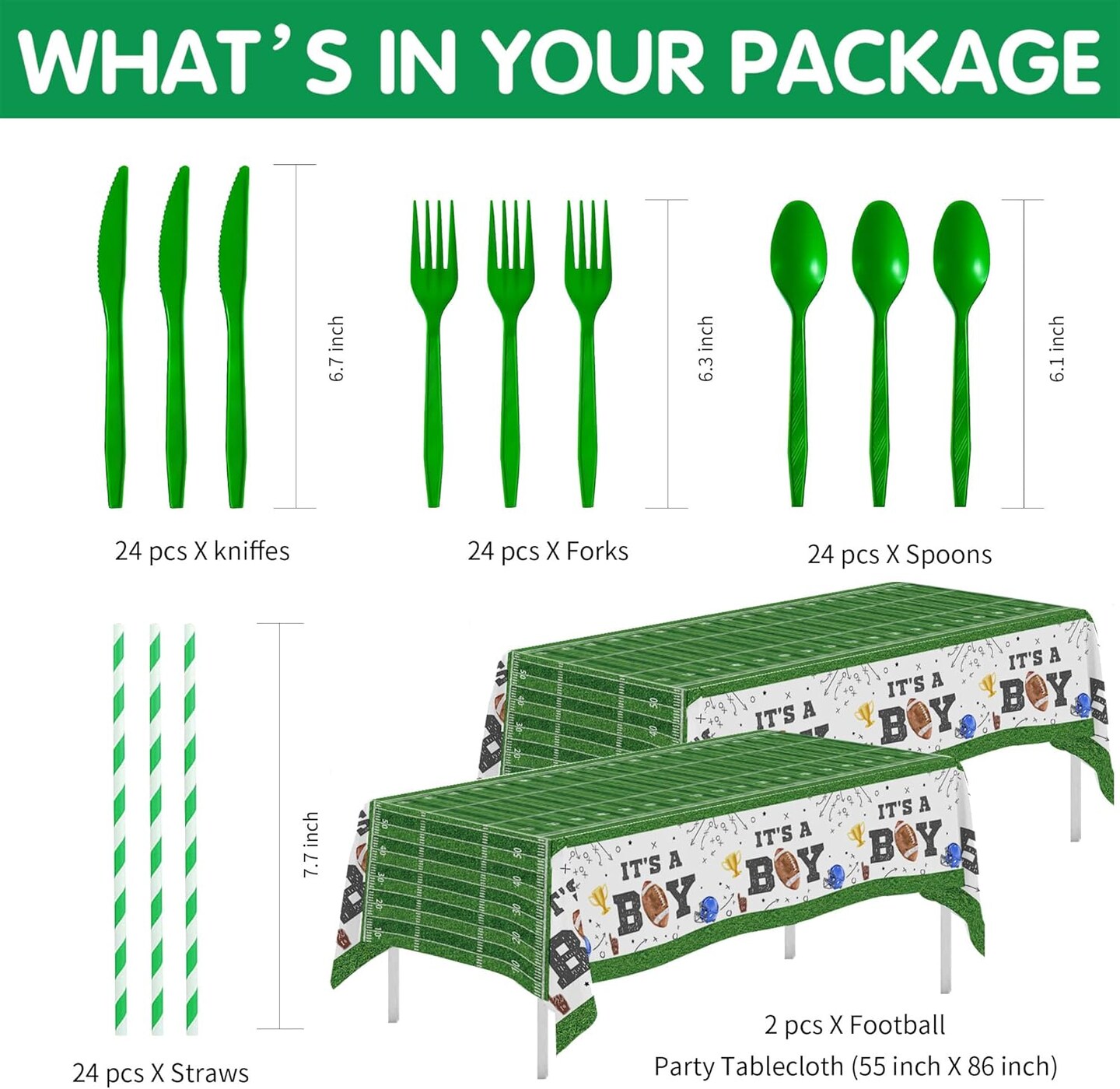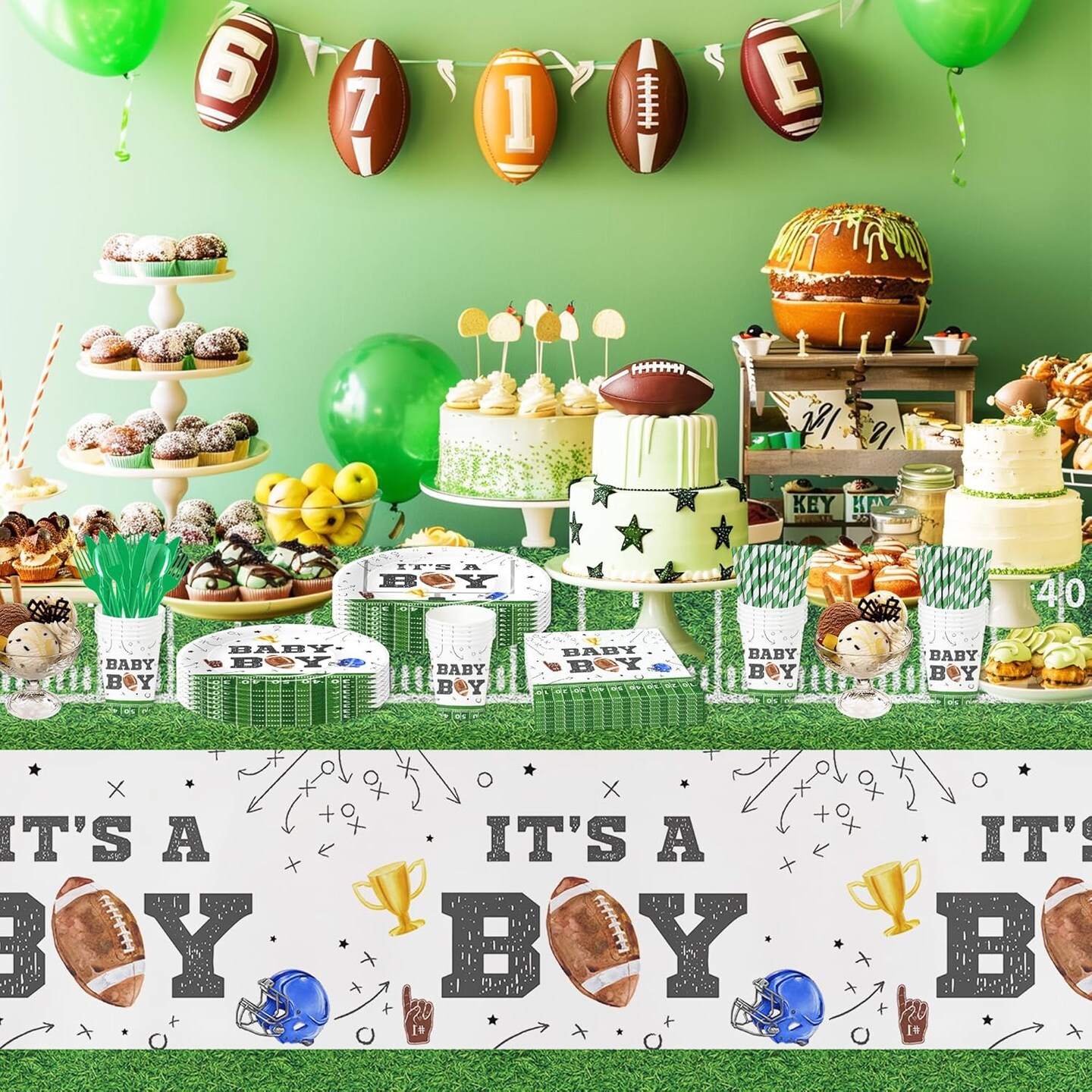 Football Baby Shower Decorations & Tableware Serve 24 (Green, White)
