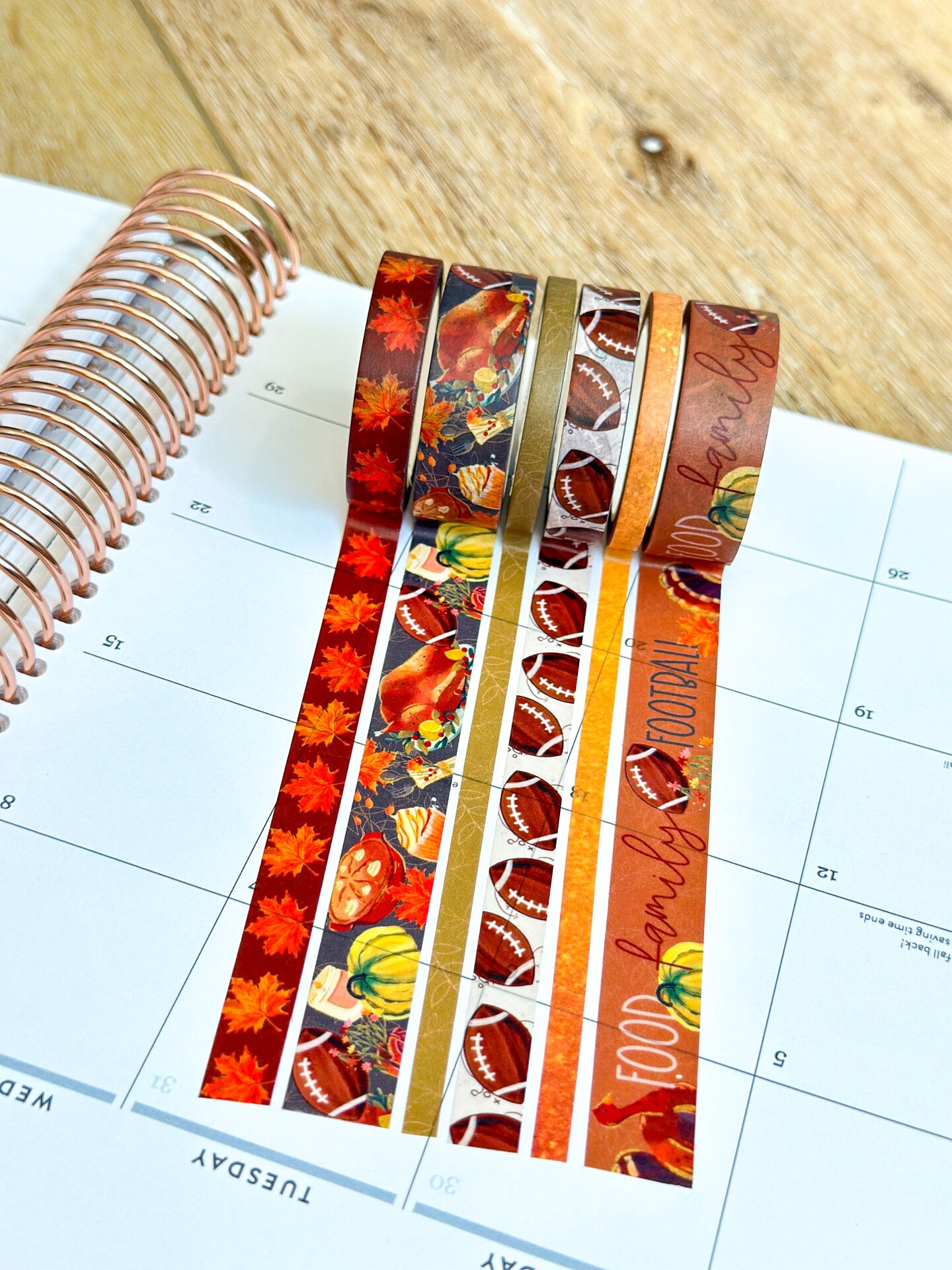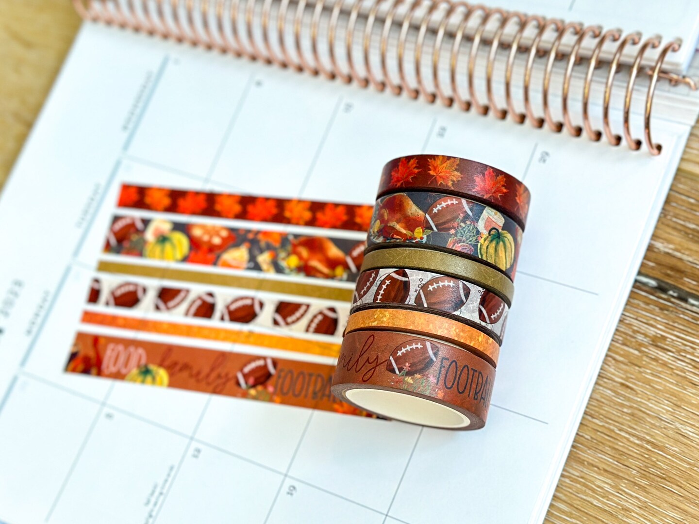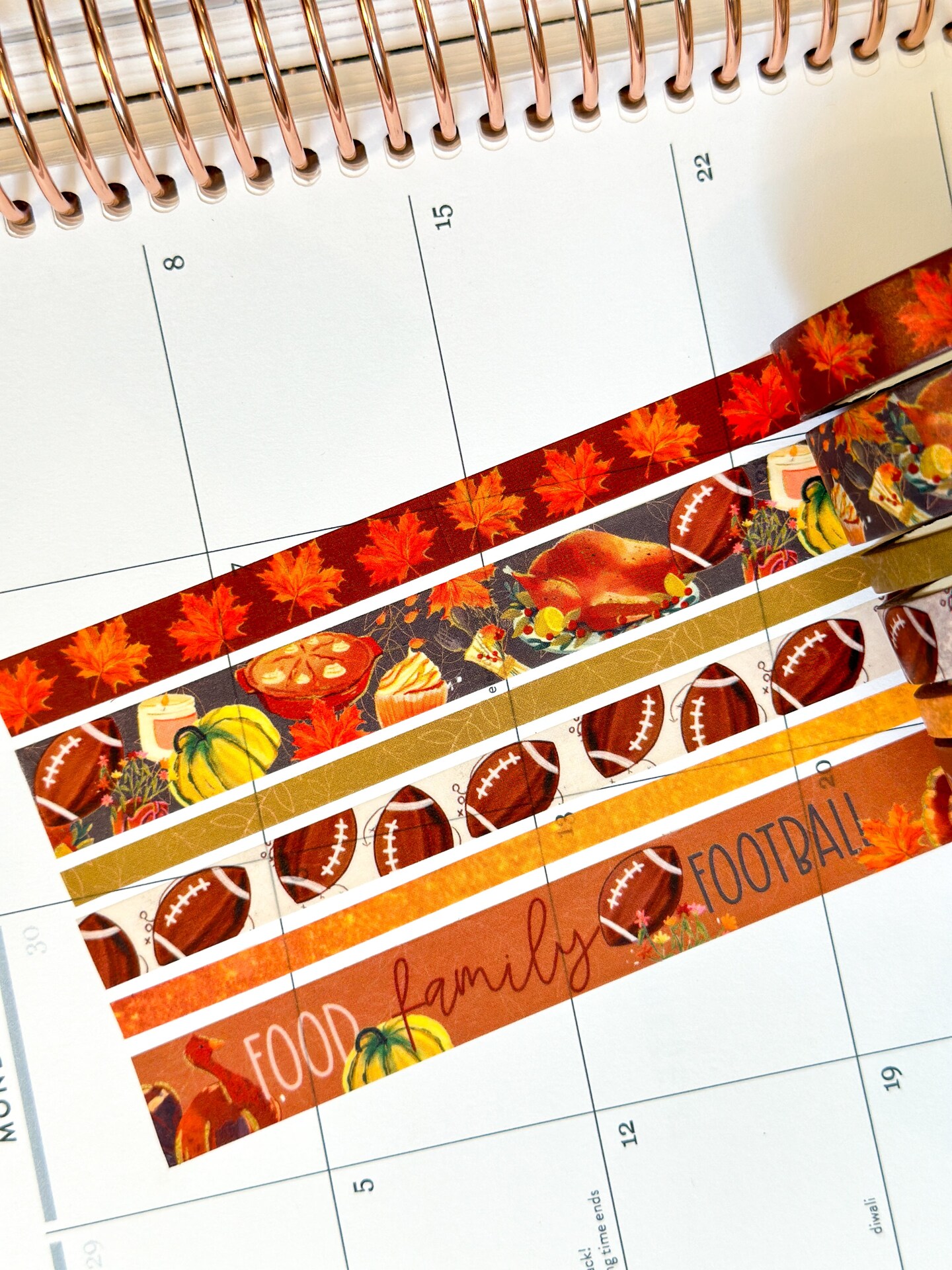 Football Fall Turkeys Thanksgiving Dinner Leaves Autumn Washi Tape Set November 2023 - W096