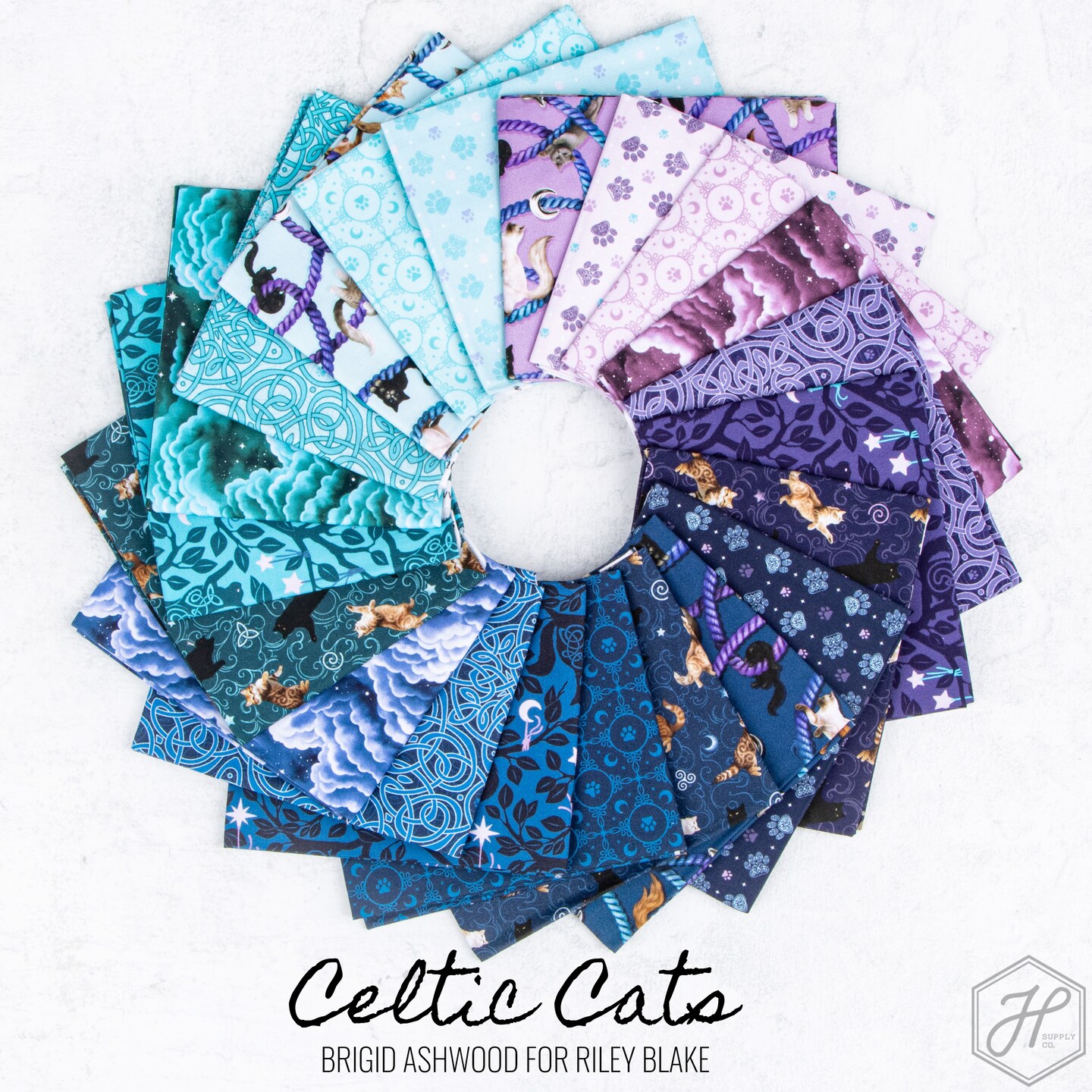Forest Cats in Blue (cd16582-blue) | Celtic Cats | Brigid Ashwood | Riley Blake