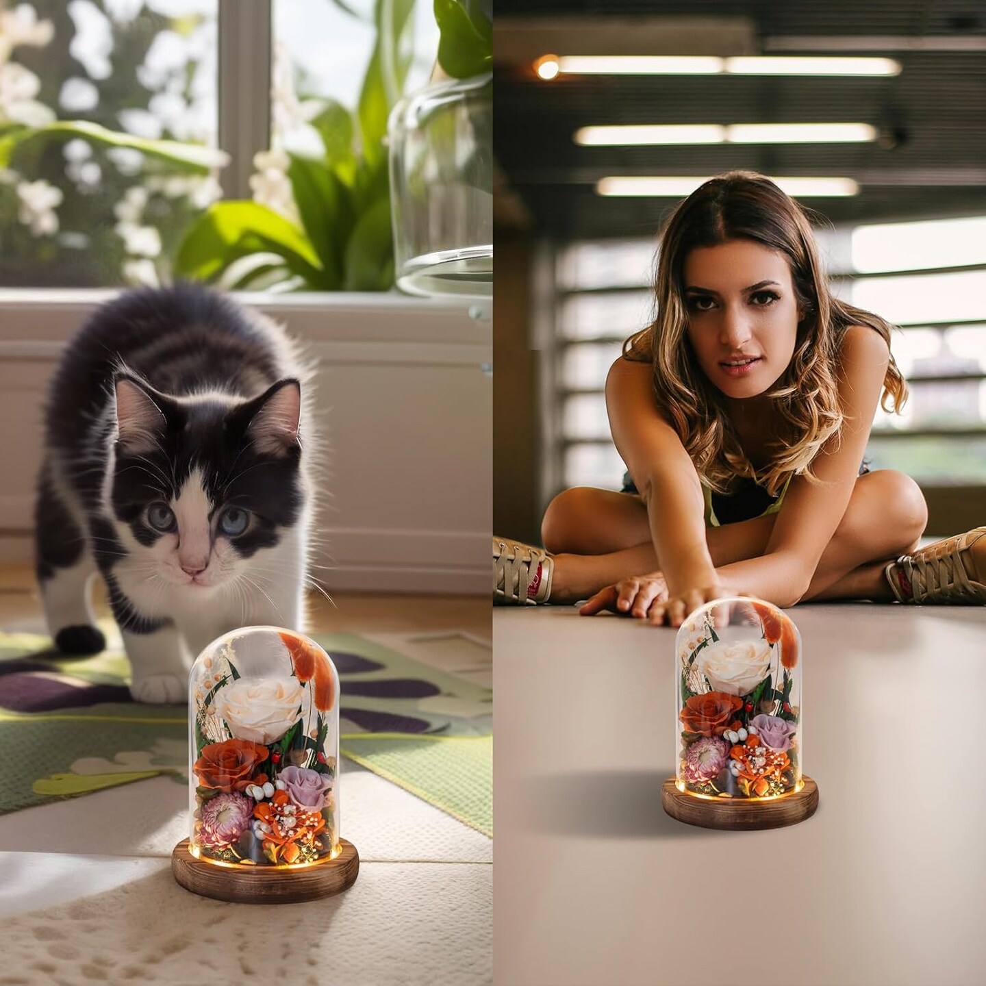 Forever Flowers with Symbolic Ladybugs: Preserved Flowers Gift for Women-Romantic Table Centerpiece-Valentines, Anniversary, Mom Gifts for Her-Flowers for Delivery Prime (Orange)