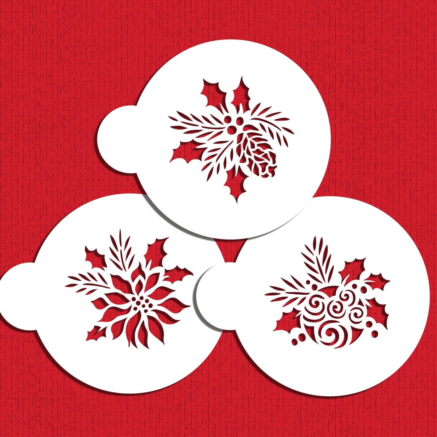 Forever Green Ornaments Cookie Stencils: Christmas Ball, Pinecone, Poinsettia | C724 by Designer Stencils | Cookie Decorating Tools |