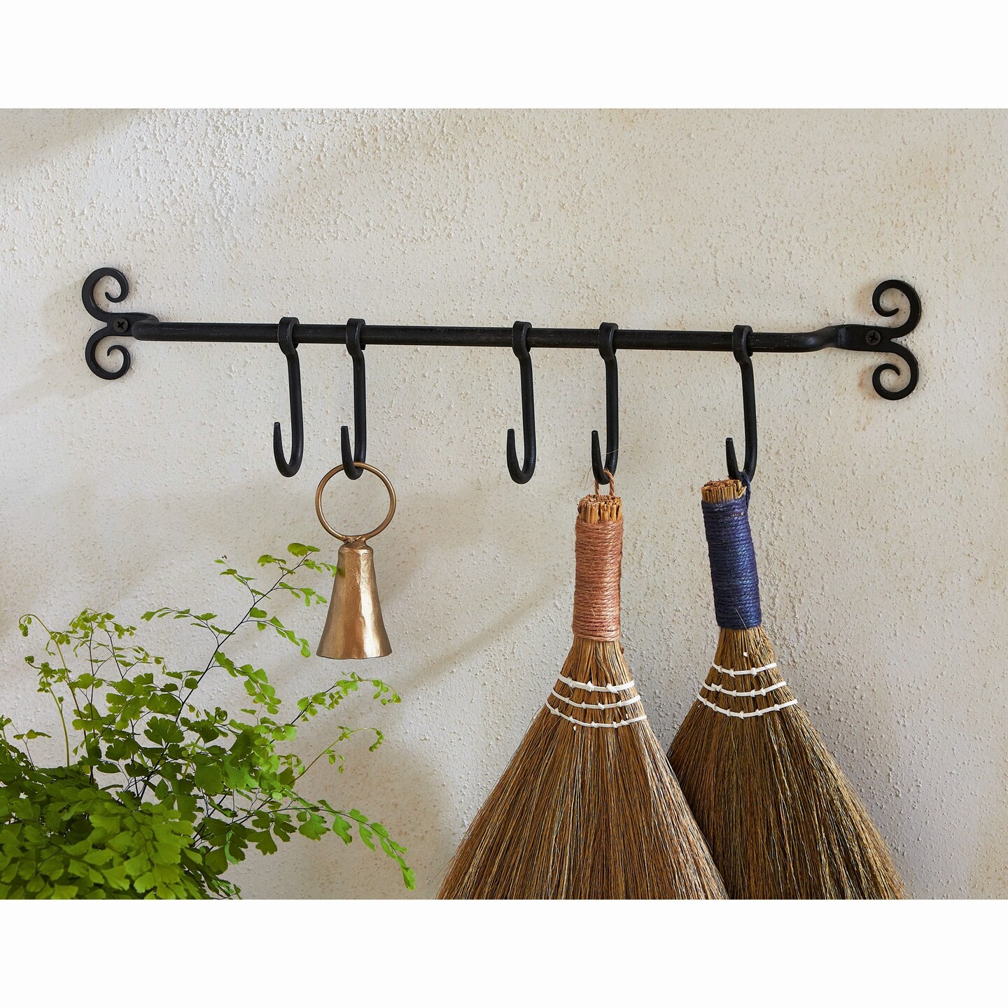 Forged Iron Mounted Towel Rod with 5 Hooks, 18.5L x 2.5W x 2.0H inch.
