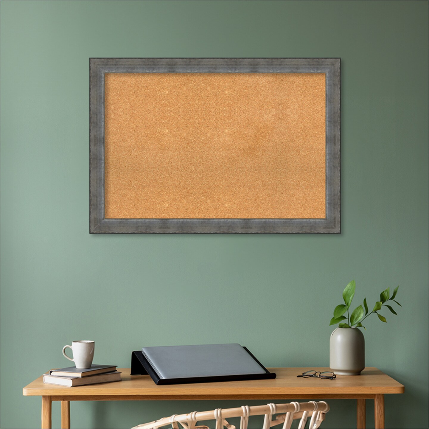 Forged Pewter Wood Framed Corkboard, Natural Cork