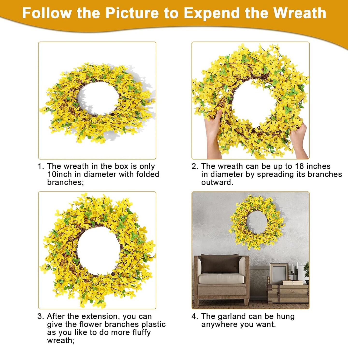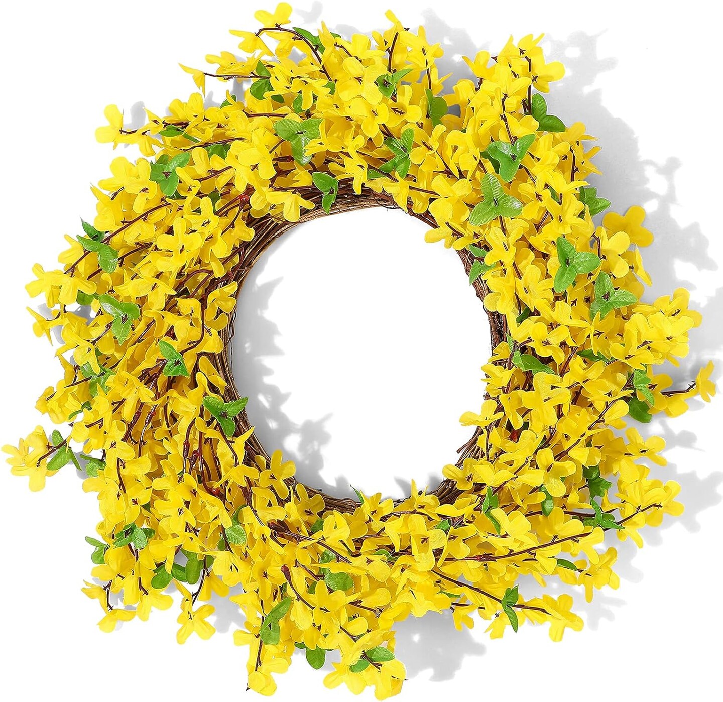 Forsythia Wreath for Front Door 18 Inch Yellow Spring Summer Artificial