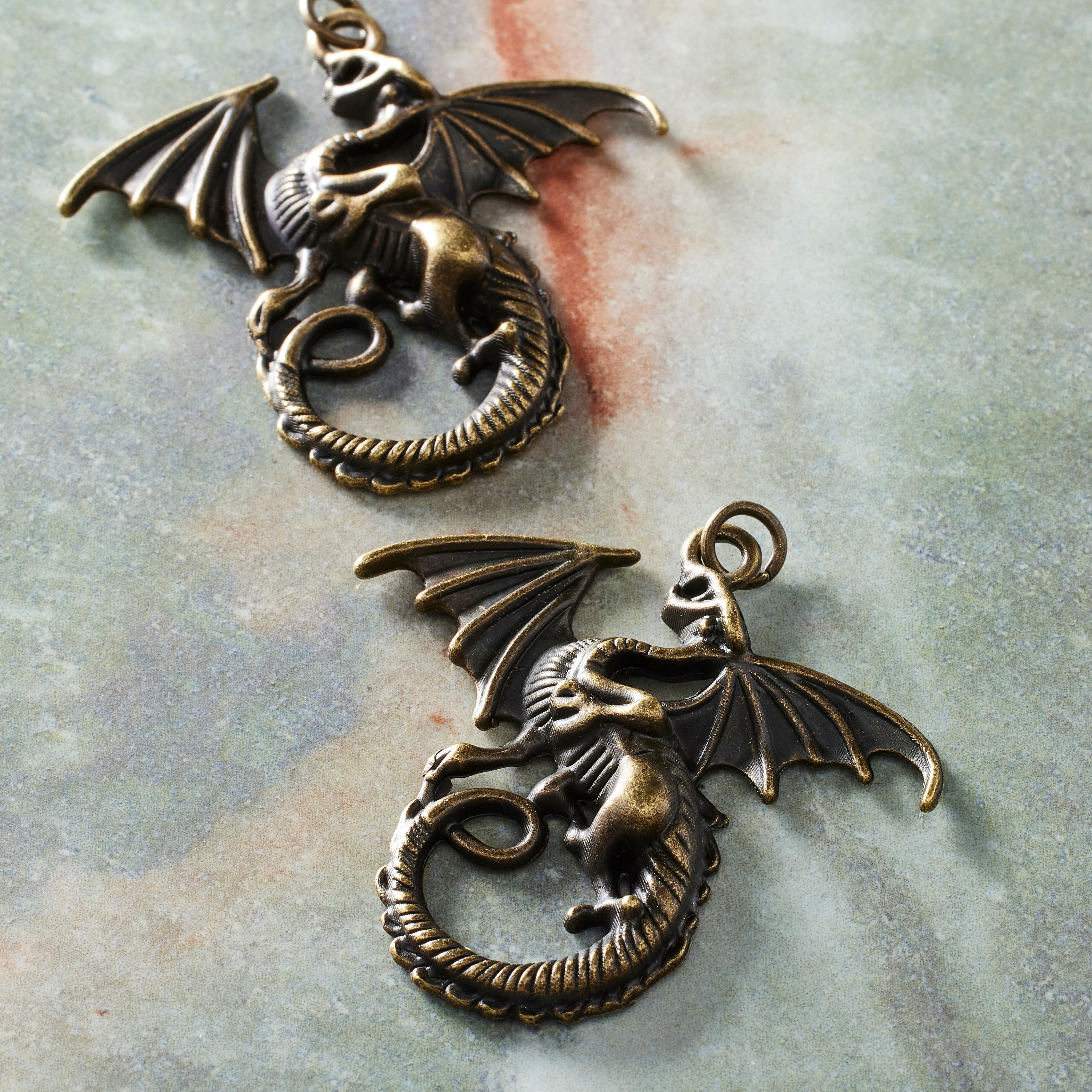 Found Objects™ Oxidized Brass Dragon Pendants By Bead Landing™