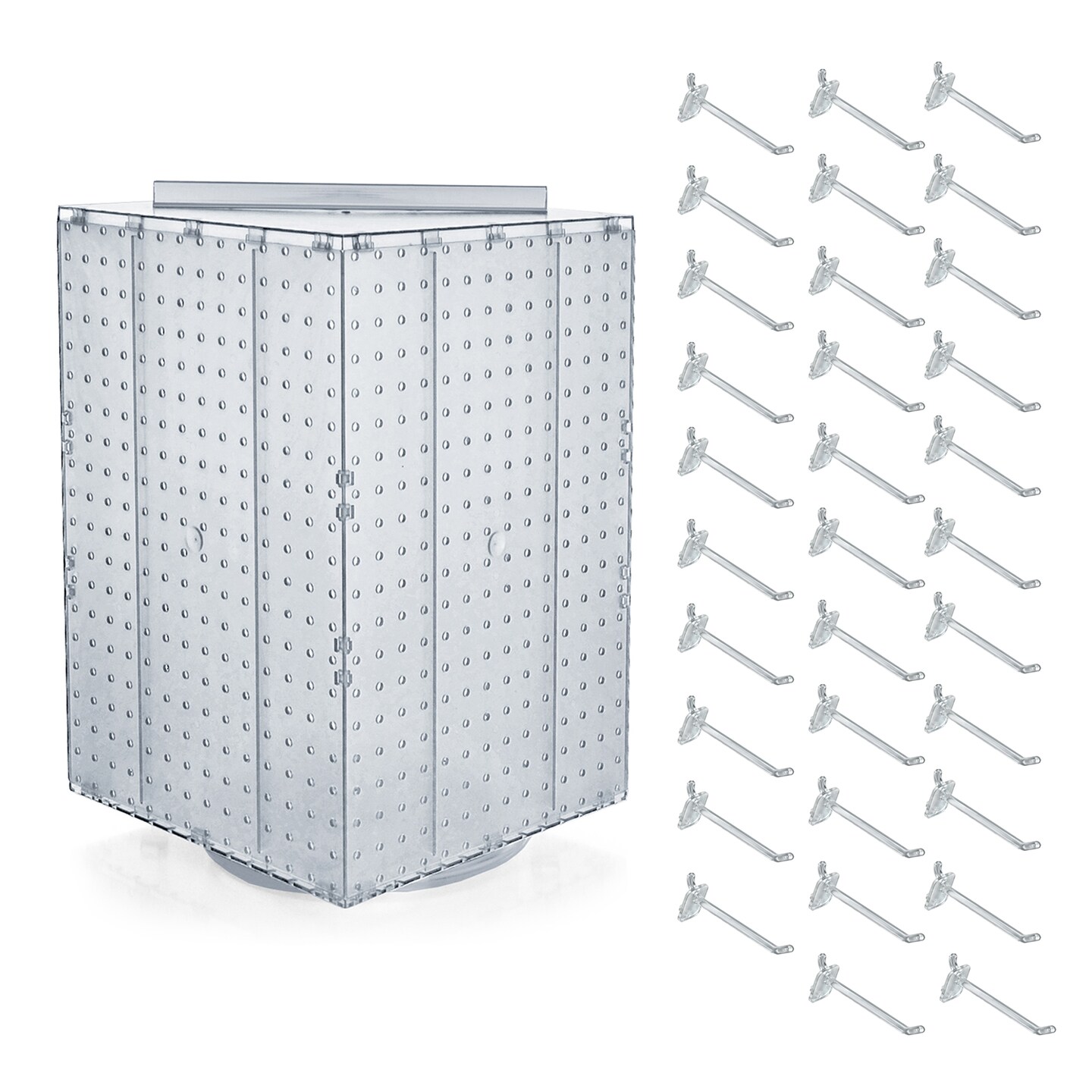 Four-Sided Revolving 14"W x 20"H Pegboard Counter Display w/ 32 4" Hooks