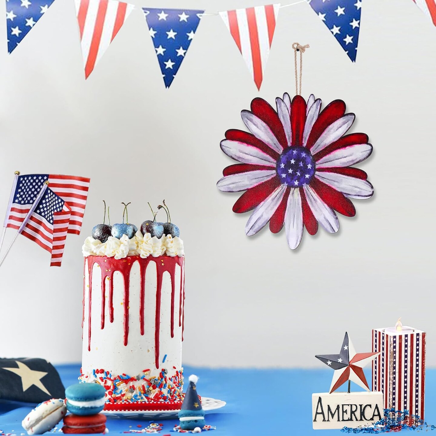 Fourth of July Front Door Sign Patriotic Wreaths Wooden Double Sided Independence Day Hanging Sign 4th of July Door Sign Patriotic Plaque July 4th Memorial Day Wall Window Porch Decorations