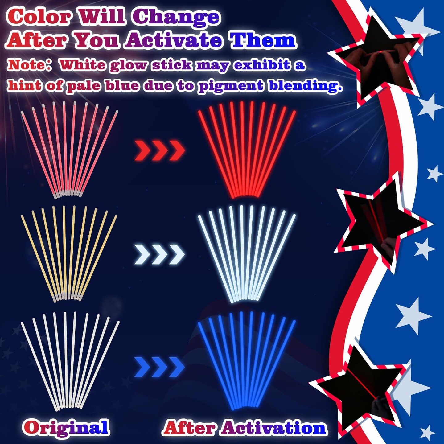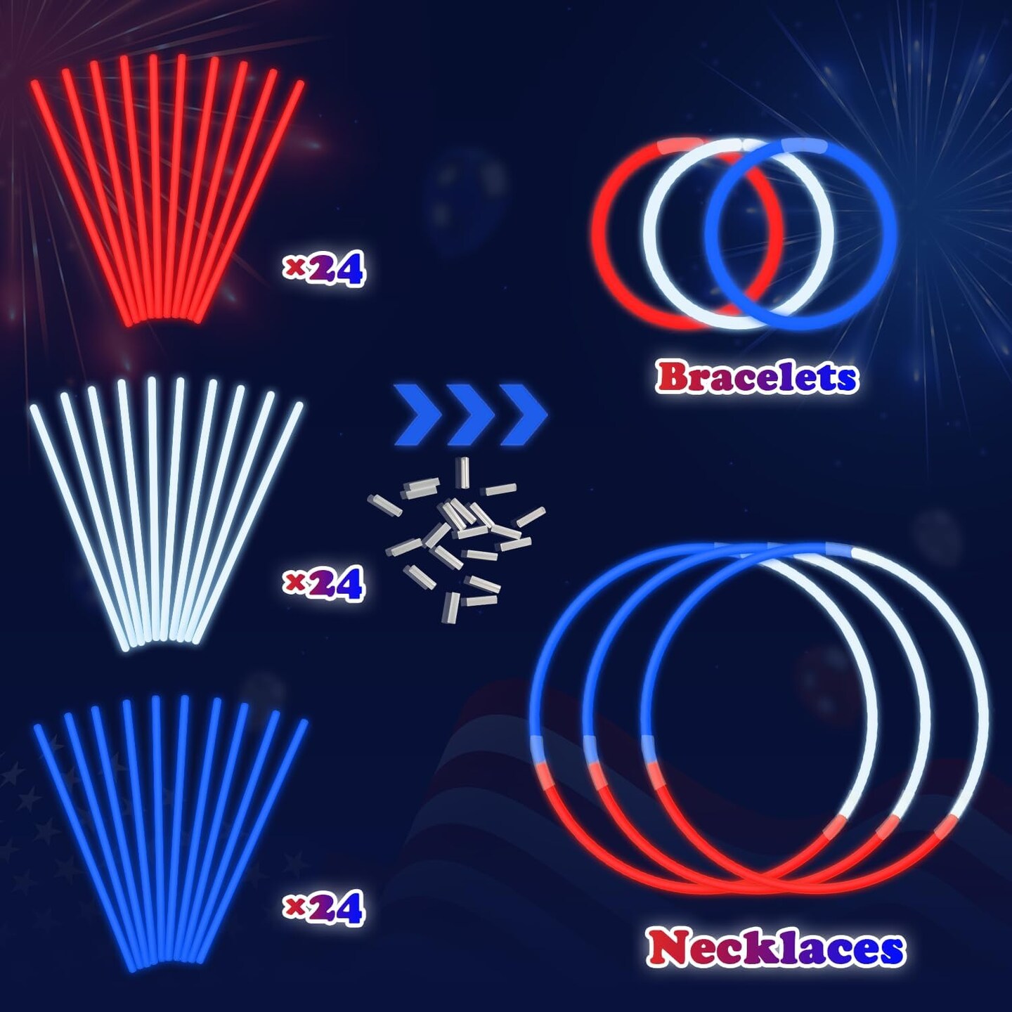 Fourth of July Memorial Day Accessories for Kids, 72 PCS Red White Blue Glow Sticks Party Favors Supplies, Patriotic Treat Goodie Gift Bag Stuffers, Light Up Party Toys Stuff Decor for 4th of July