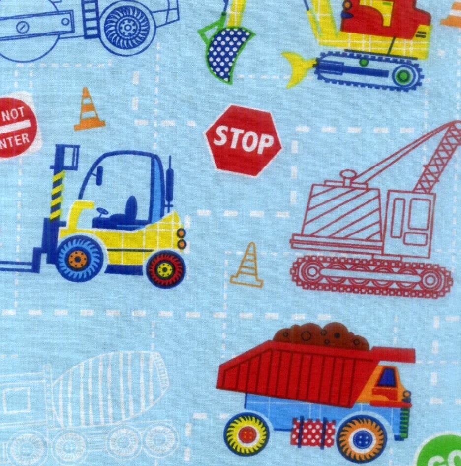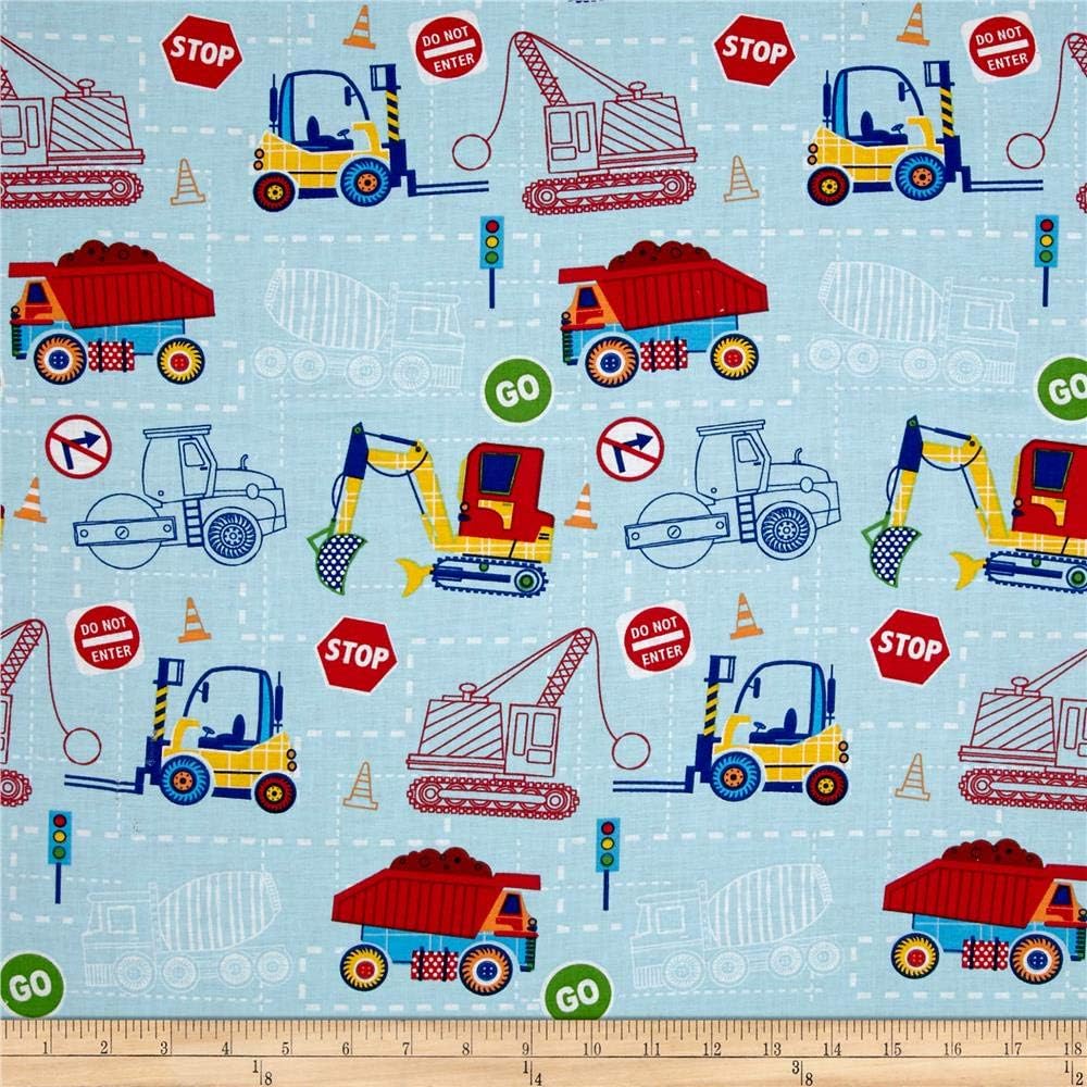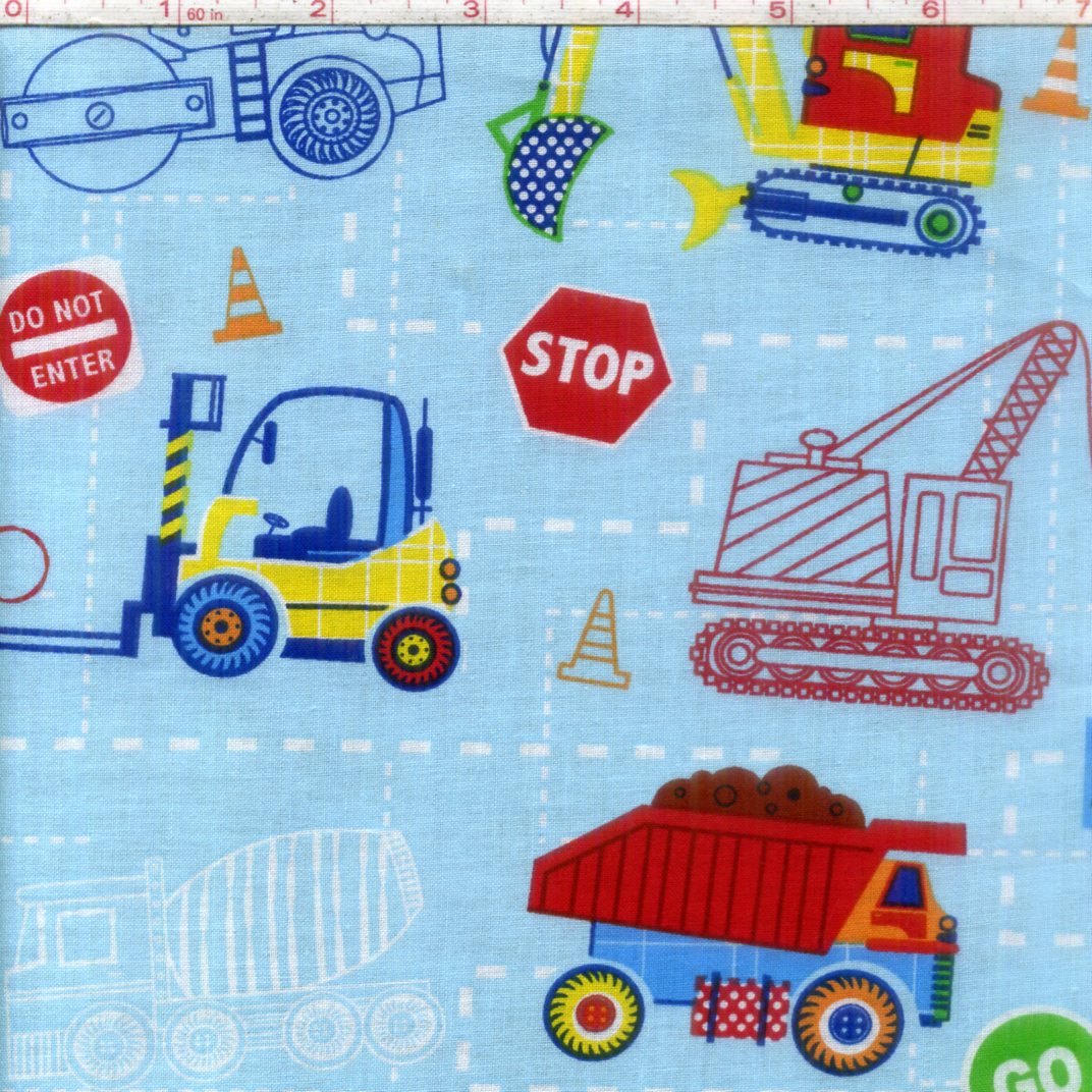 Foust Textiles Kids Choice Construction Crew Blue 100% Cotton Price per Yard Baby