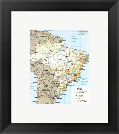 Framed Art Brazil Map Wall Decor 18x24 Artwork