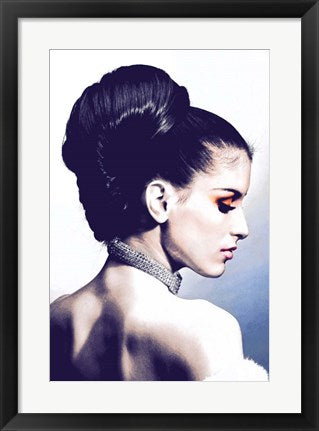 Framed Art Vintage Fashion Woman With Necklace Blue Wall Decor 18x24 Artwork