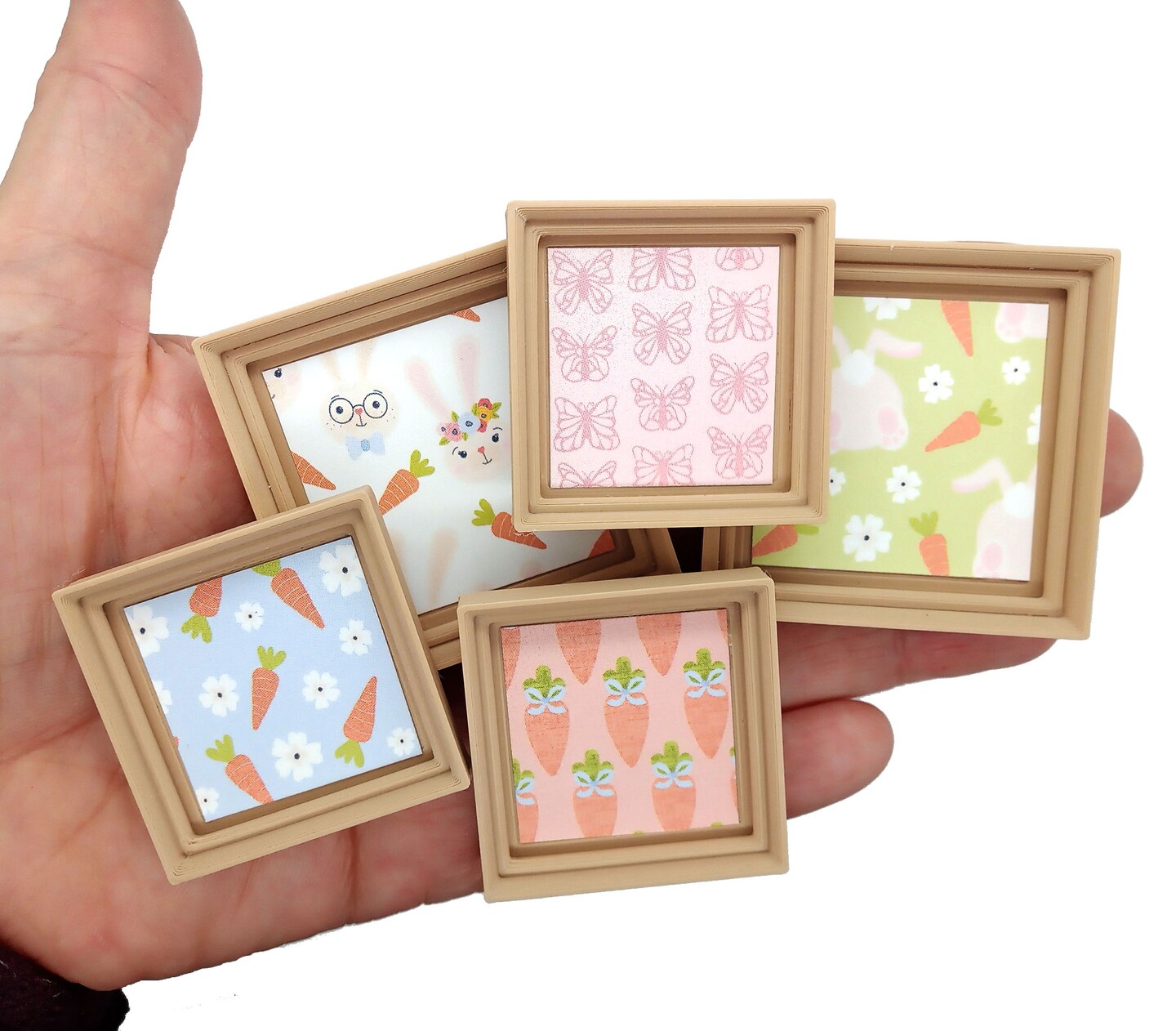 Framed Easter Prints for Dollhouse, Tiny 1:12 Scale Decor, 5 pcs, Adorabilities