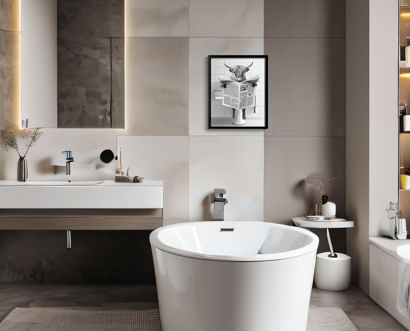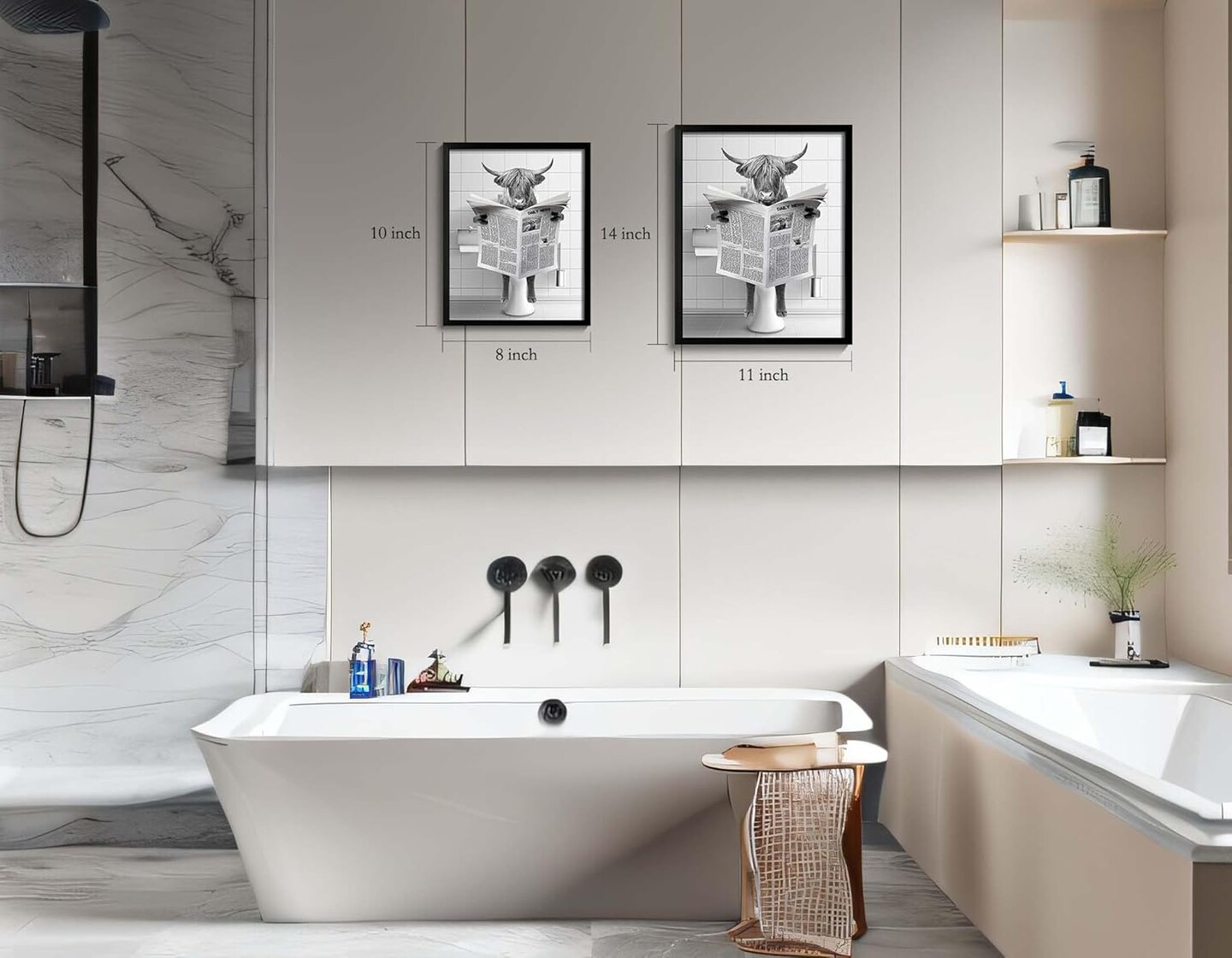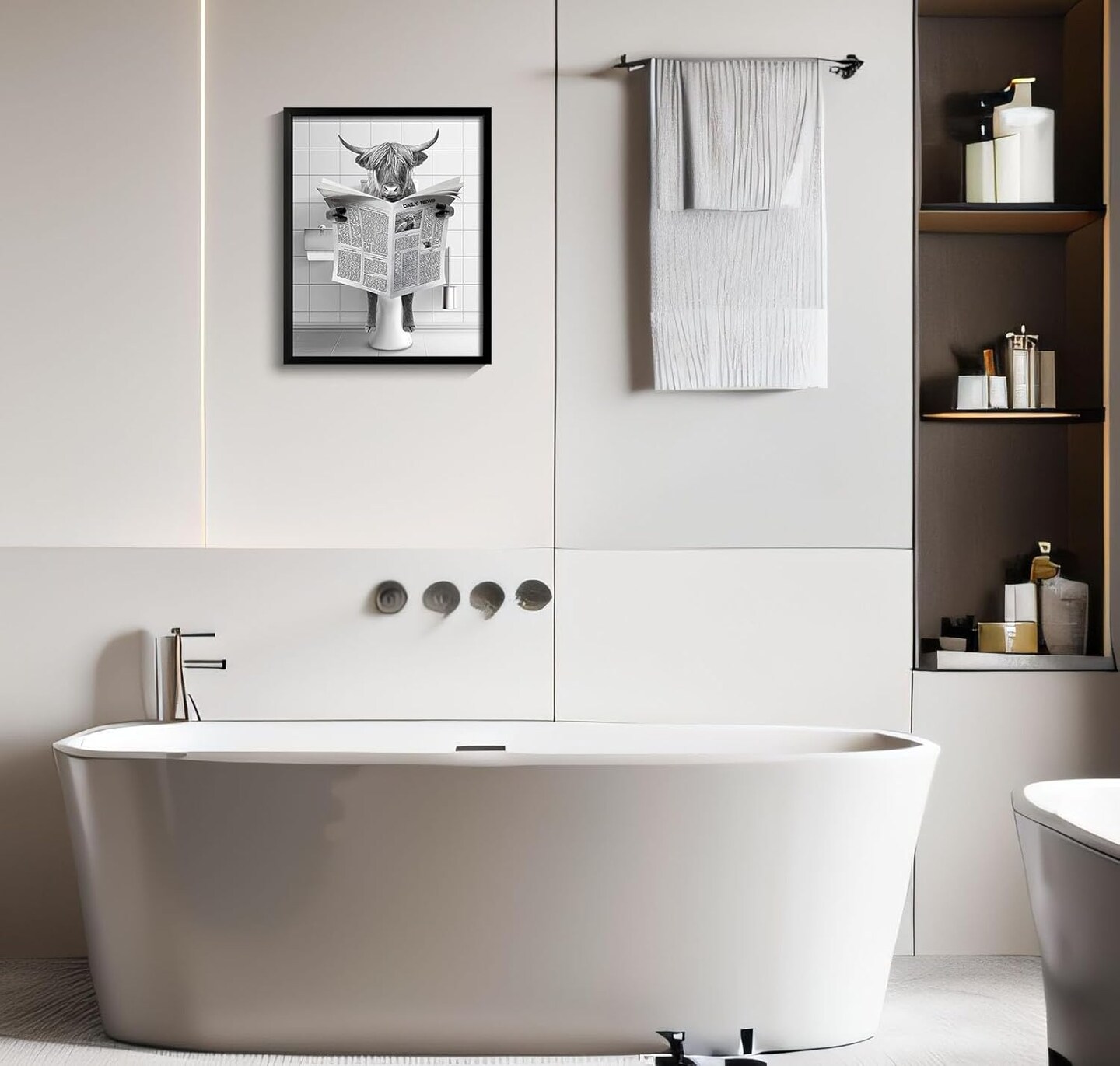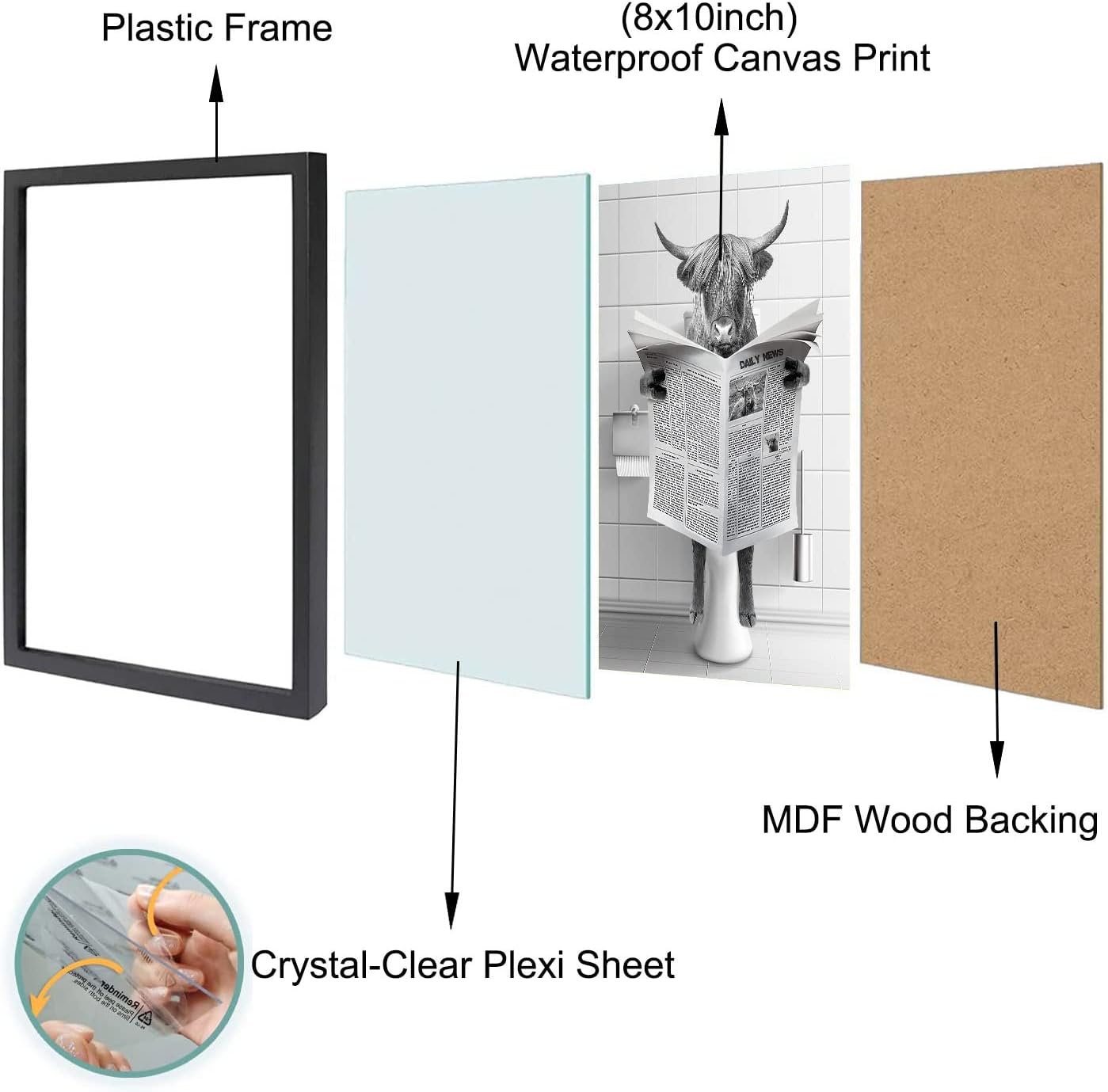 Framed Highland Cow Wall Art, Bathroom Decor Wall Art, Black and White Wall Art, Funny Bathroom Wall Art Signs, Humor Animals Bathroom Artwork, Cute Canvas Print Ready to Hang (Framed,8''x10'')