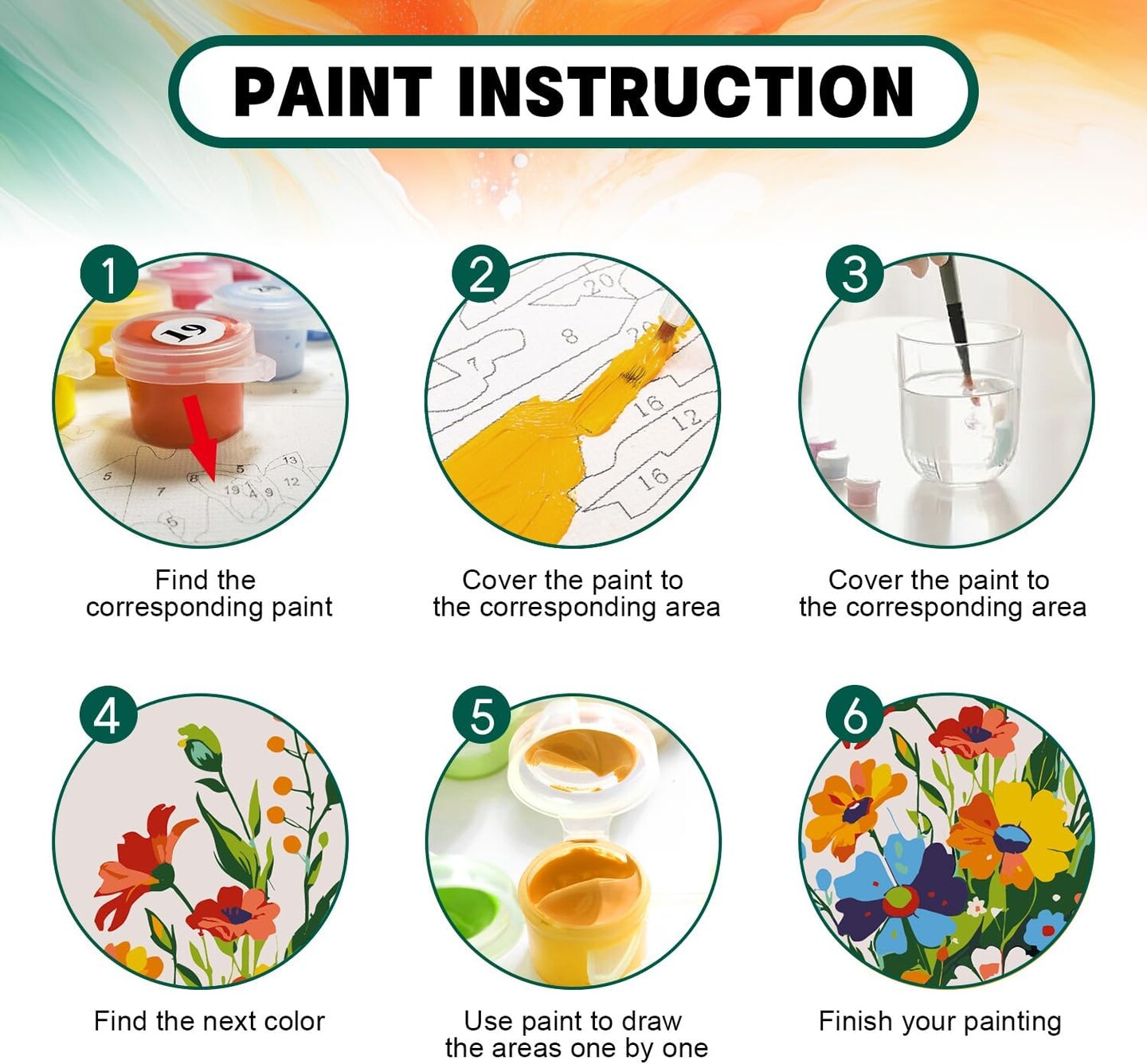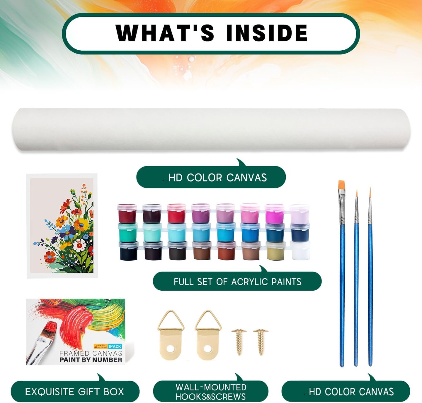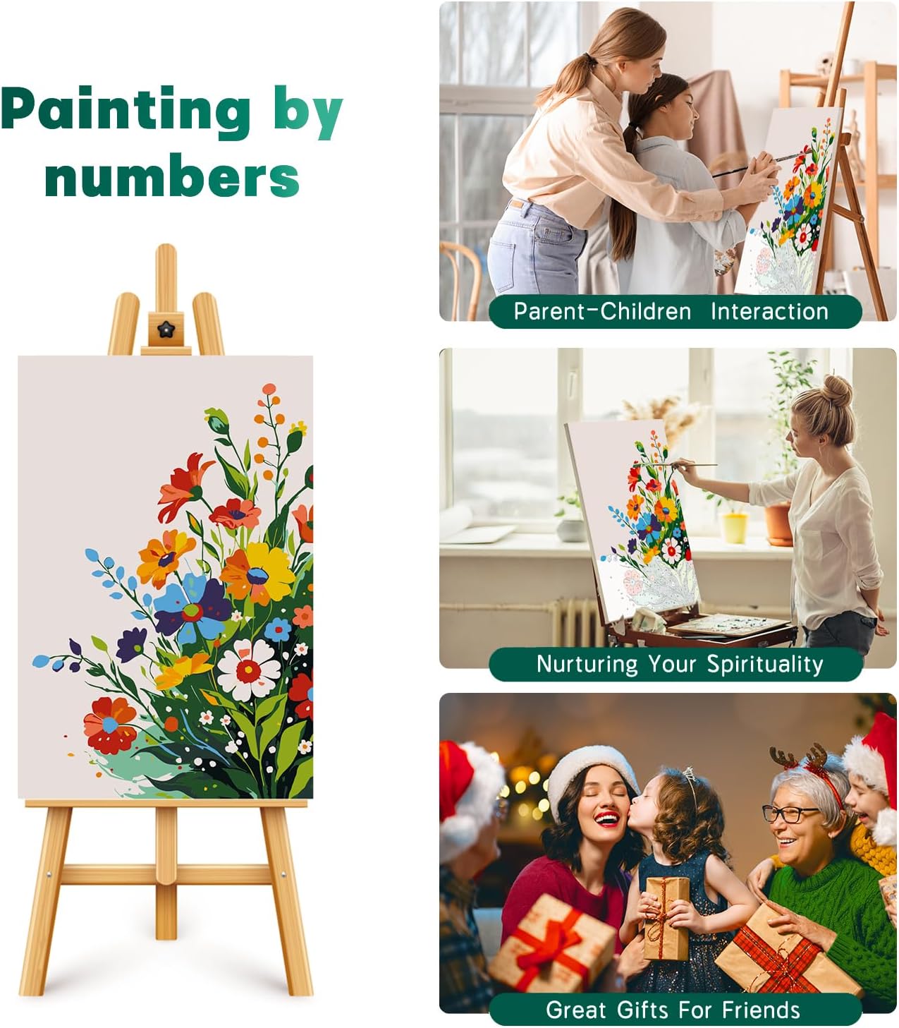 Framed Paint by Numbers Kit for Adults Beginner & Kids, Flowers Easy Adult Paint by Number Kits on Canvas, DIY Colorful Acrylic Watercolor Oil Paint by Number for Teens for Home Decor Gift 8x12 Inch