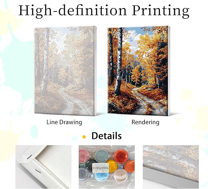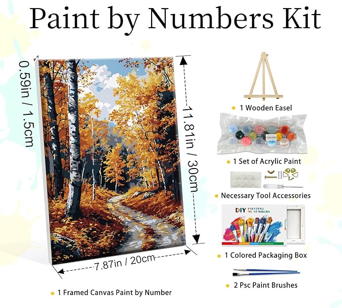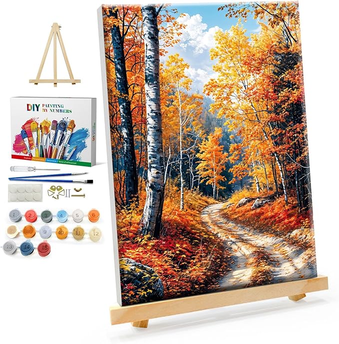 Framed Paint by Numbers Kit for Adults - Fall Forest Adult Paint by Number Kits on Canvas with Easel, DIY Autumn Landscape Paint by Number Framed Canvas for Home Wall Decor 8x12 Inch