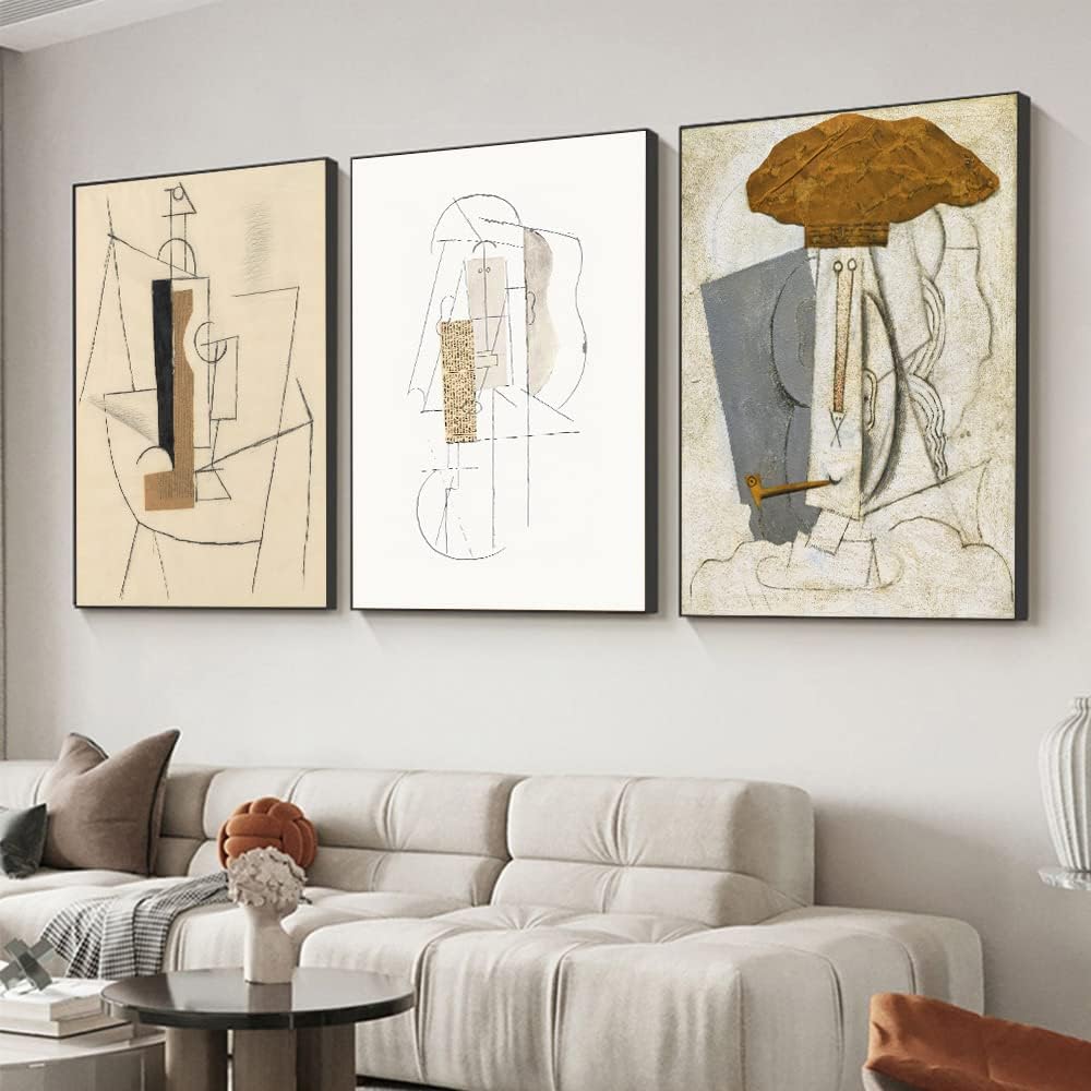 Framed Wall Art, Boho Wall Art Set of 3, Mid Century Modern Decor 16" x 24", Minimalist Black Beige Neutral Abstract Portrait Canvas Prints Wall Decor for Bedroom Living Room Bathroom…
