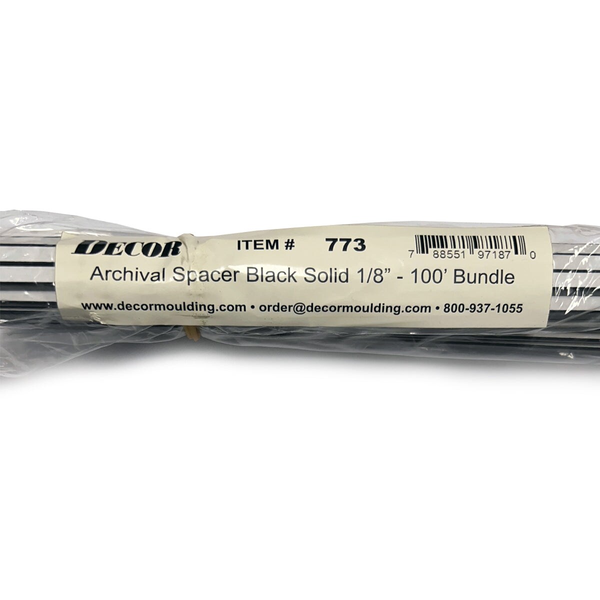 Framer Supply Archival Glass & Art Spacer Black 1/8", 100 Ft Solid Bundle (20 x 5' Sticks), pH Neutral Peel-and-Stick Frame Spacer for Archival Framing & Artwork Protection