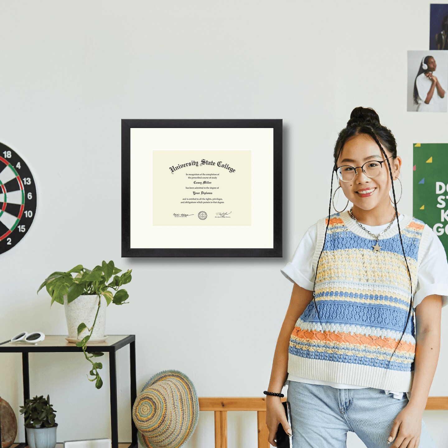 Framerly - 11"w x 8.5"h Diploma Frame - Solid Hardwood Moulding with Black Satin Finish and Off White Matting