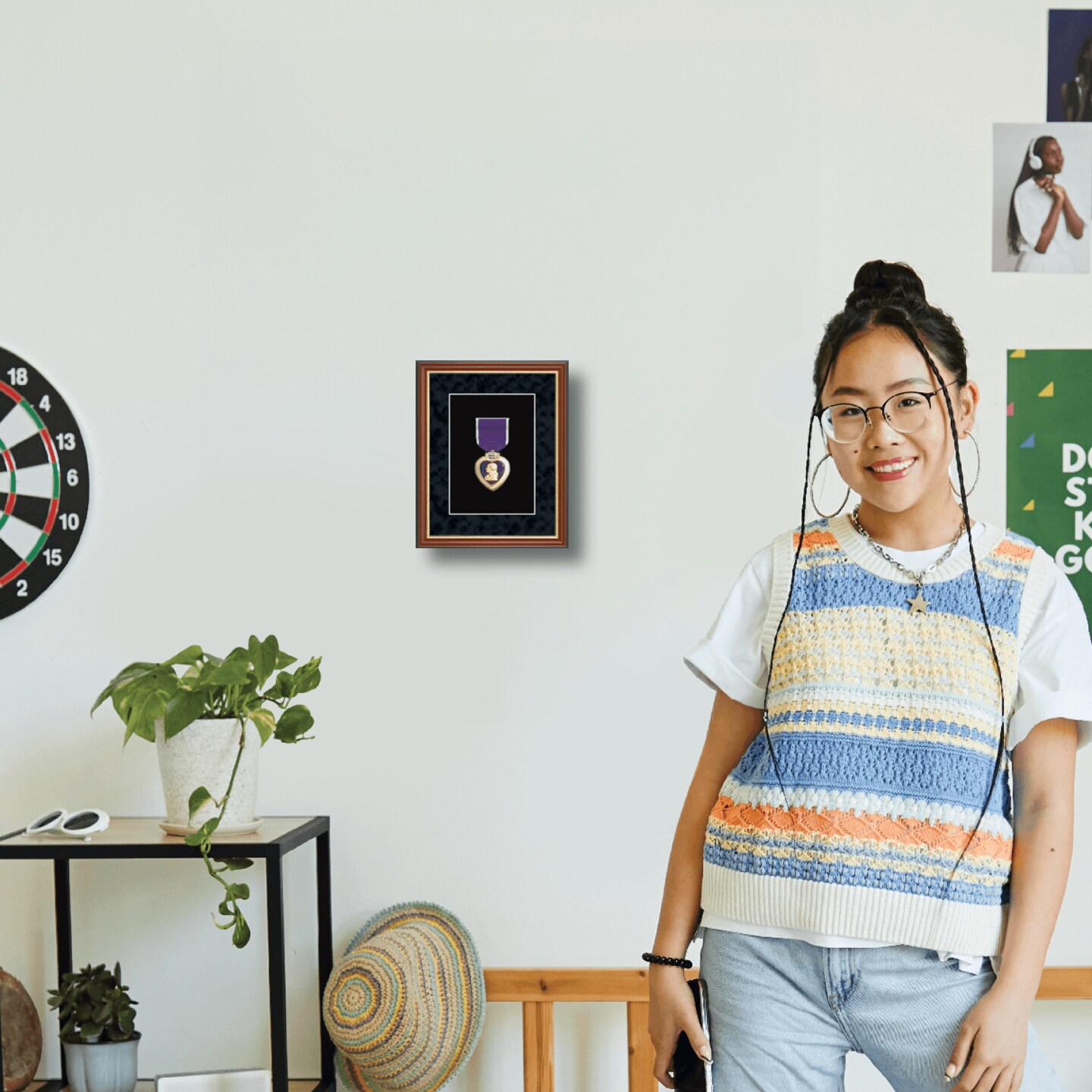 Framerly - Medal Frames and Display Cases 3"w x 5"h Medal Frame - Purple Heart Medal Frame - Cherry Moulding with Black Suede Matting