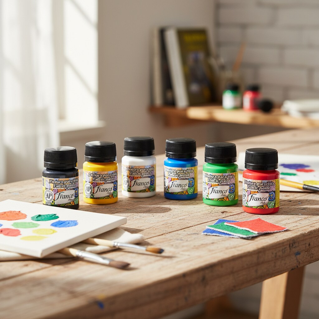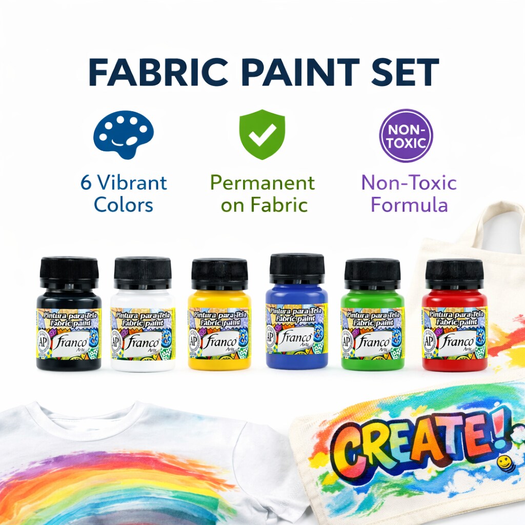 Franco Arte Fabric Paint Set 6 Colors, 1 oz Non-Toxic Textile Paint for Fabric, Clothes, Canvas & DIY Crafts