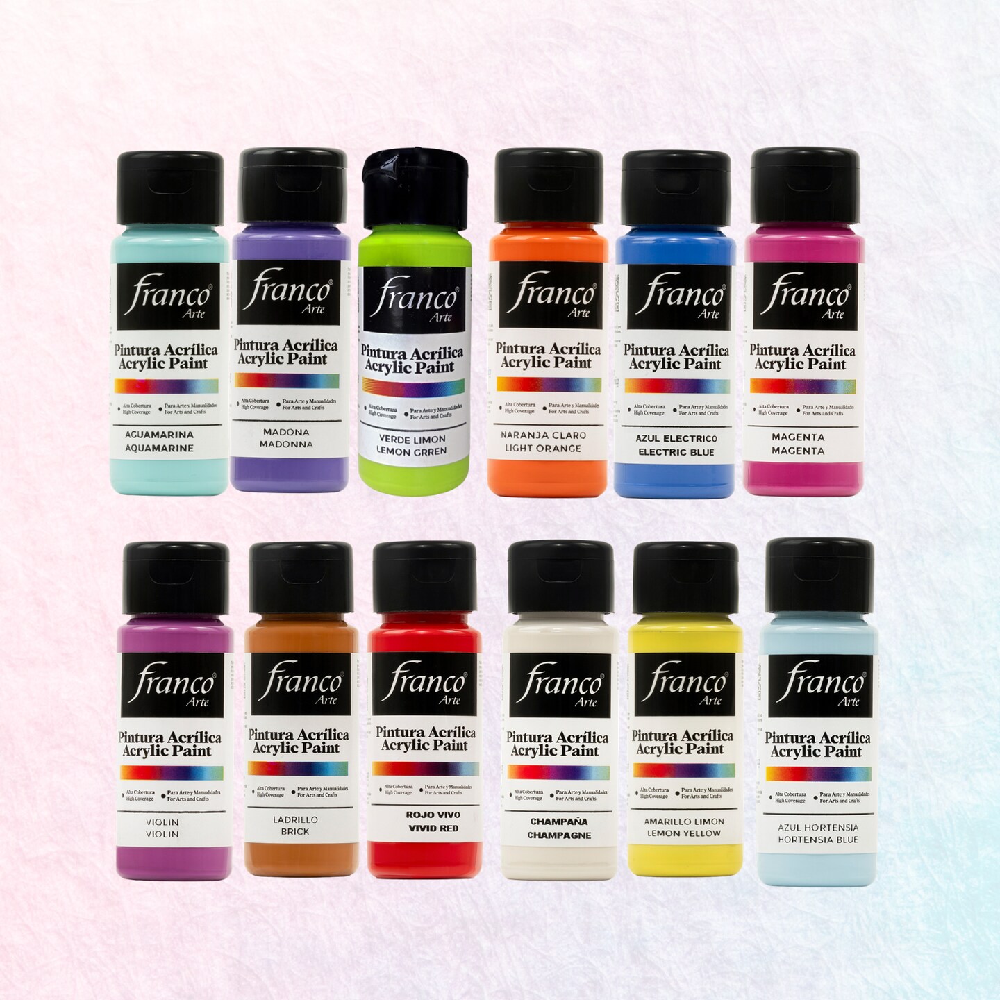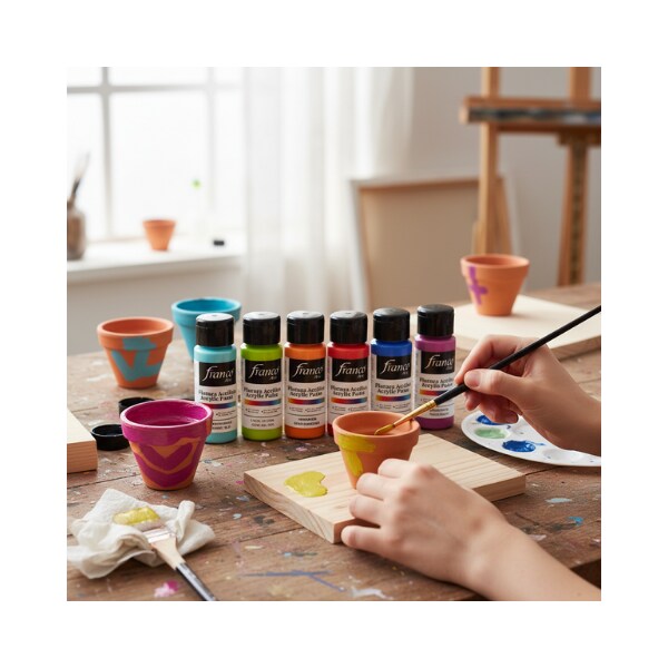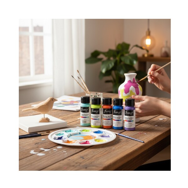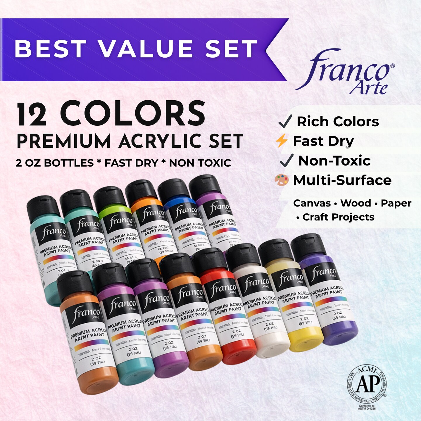 Franco Arte Premium Vibrant Acrylic Paint Set 12 Colors, 2 oz Bottles – Non-Toxic, Fast Dry for Canvas, Wood & DIY Crafts