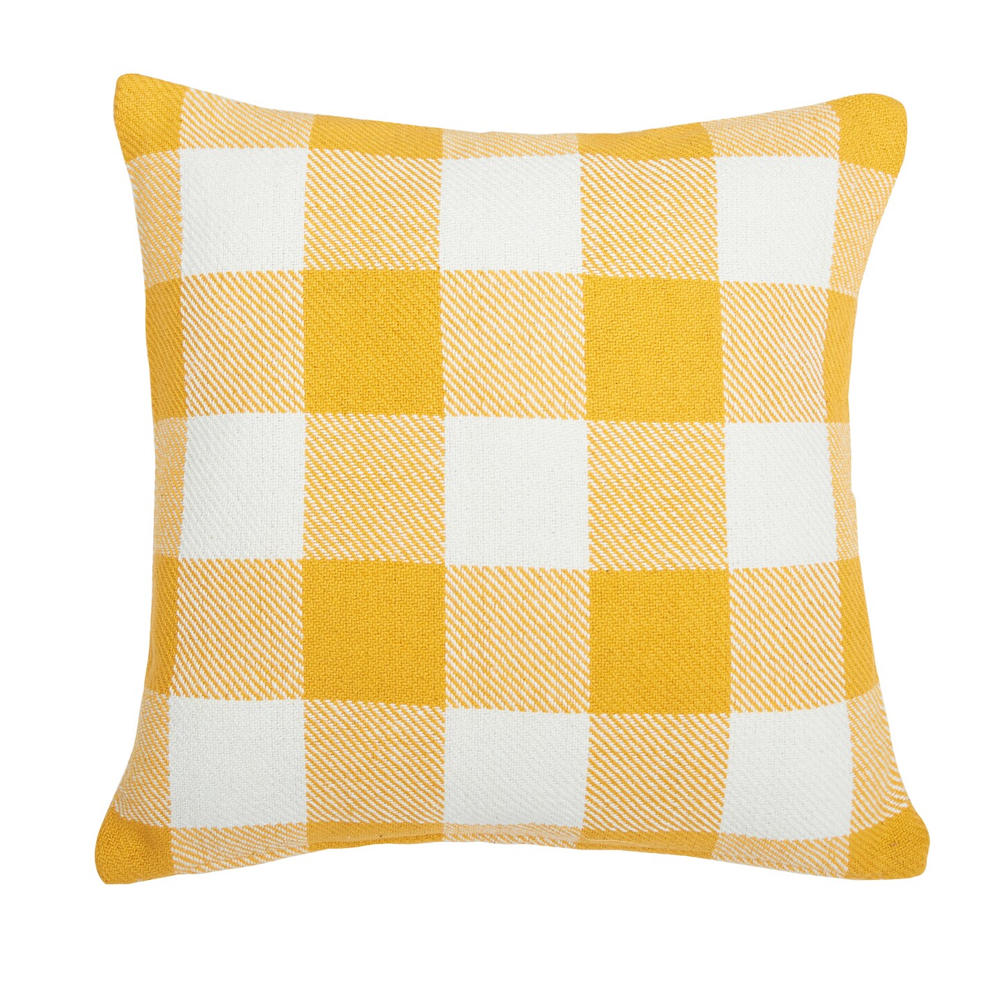 Franklin Ochre Gingham Check Woven Throw Pillow, 18" x 18"