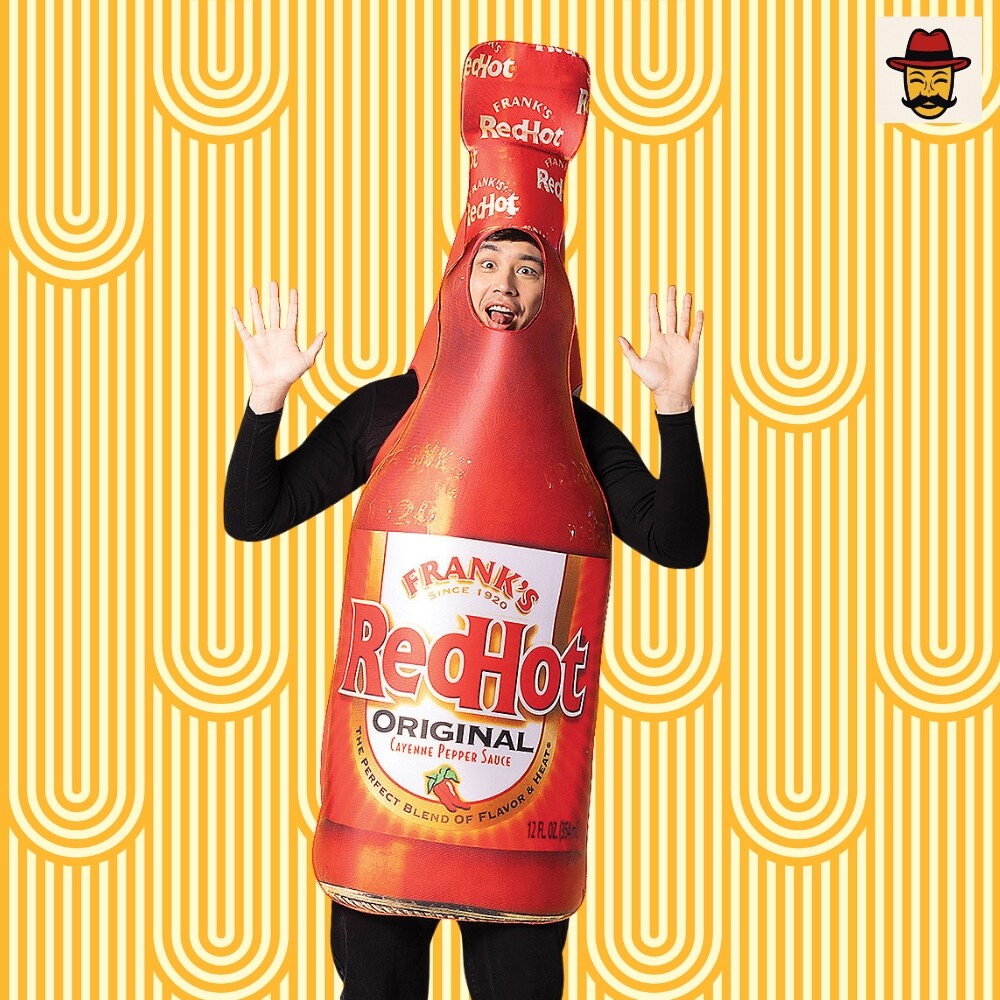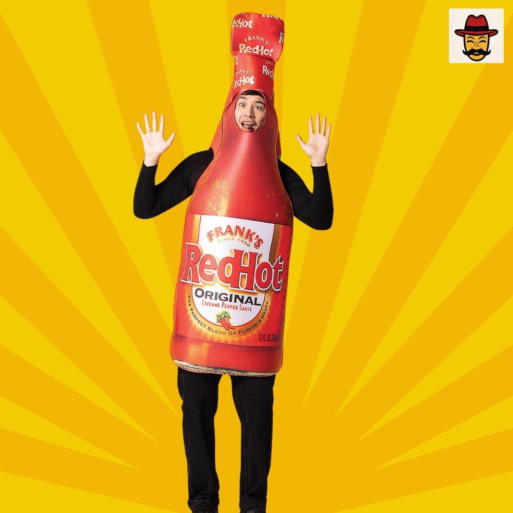 Franks Red Hot Bottle Costume Featuring a Photorealistic Foam Tunic