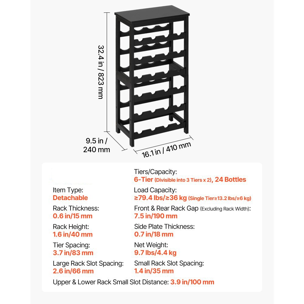 Freestanding 6-Tier Wine Bottle Holder with Tabletop, 24 Bottle Capacity