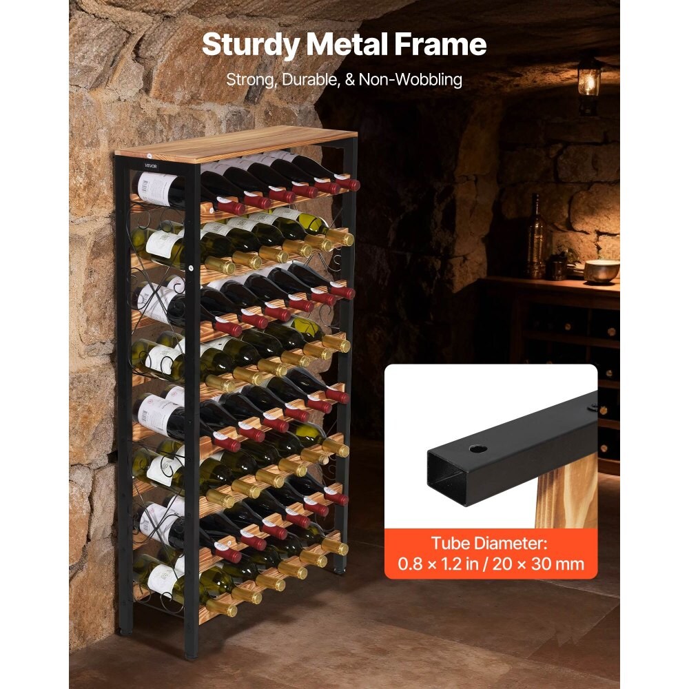 Freestanding 8-Tier Wine Bottle Holder with Wood Tabletop, 48 Bottle Capacity