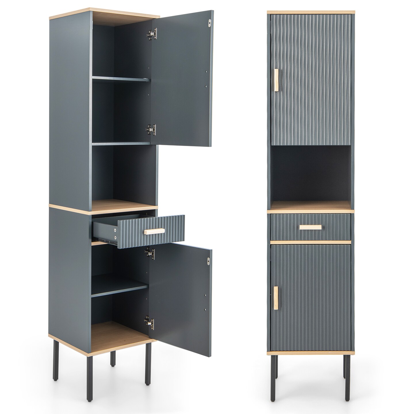 Free-Standing Bathroom Cabinet Narrow Linen with Doors and Drawer-Gray