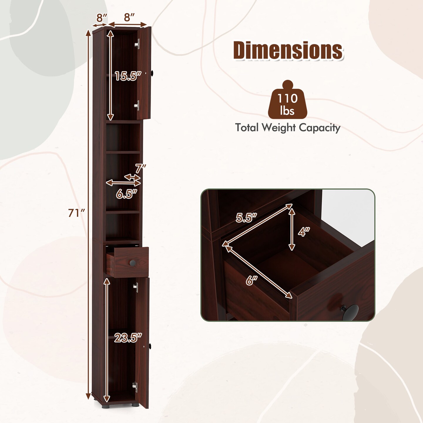 Freestanding Tall Storage Cabinet with Adjustable Shelves