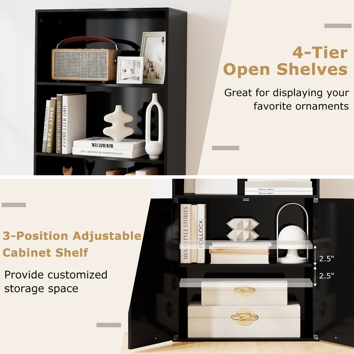 Freestanding White Bookshelf 71 Inch with 6 Shelves and 2-Door Cabinet