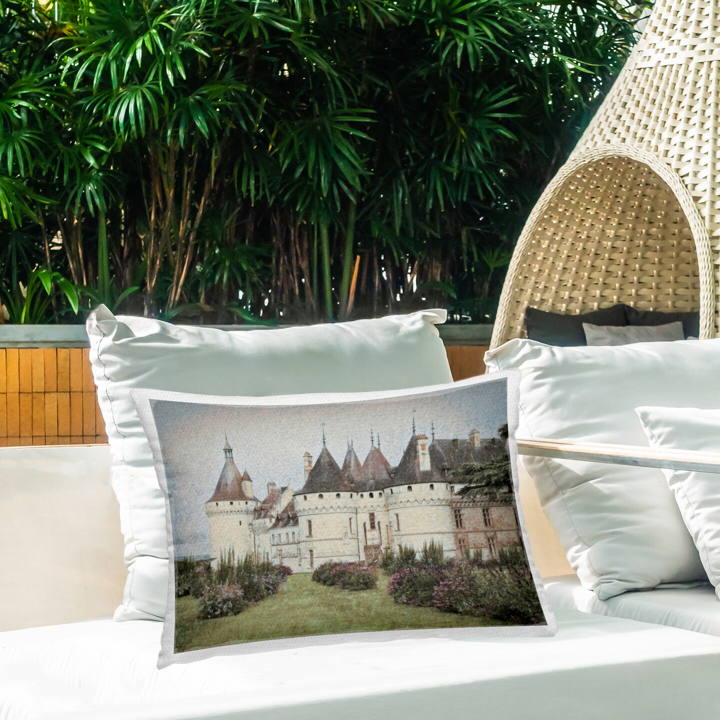 French Castle Landmark Outdoor Printed Pillow Design by Graffitee Studios, 14 x 7 x 20