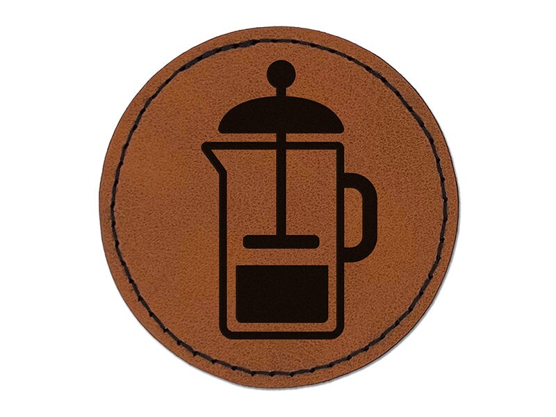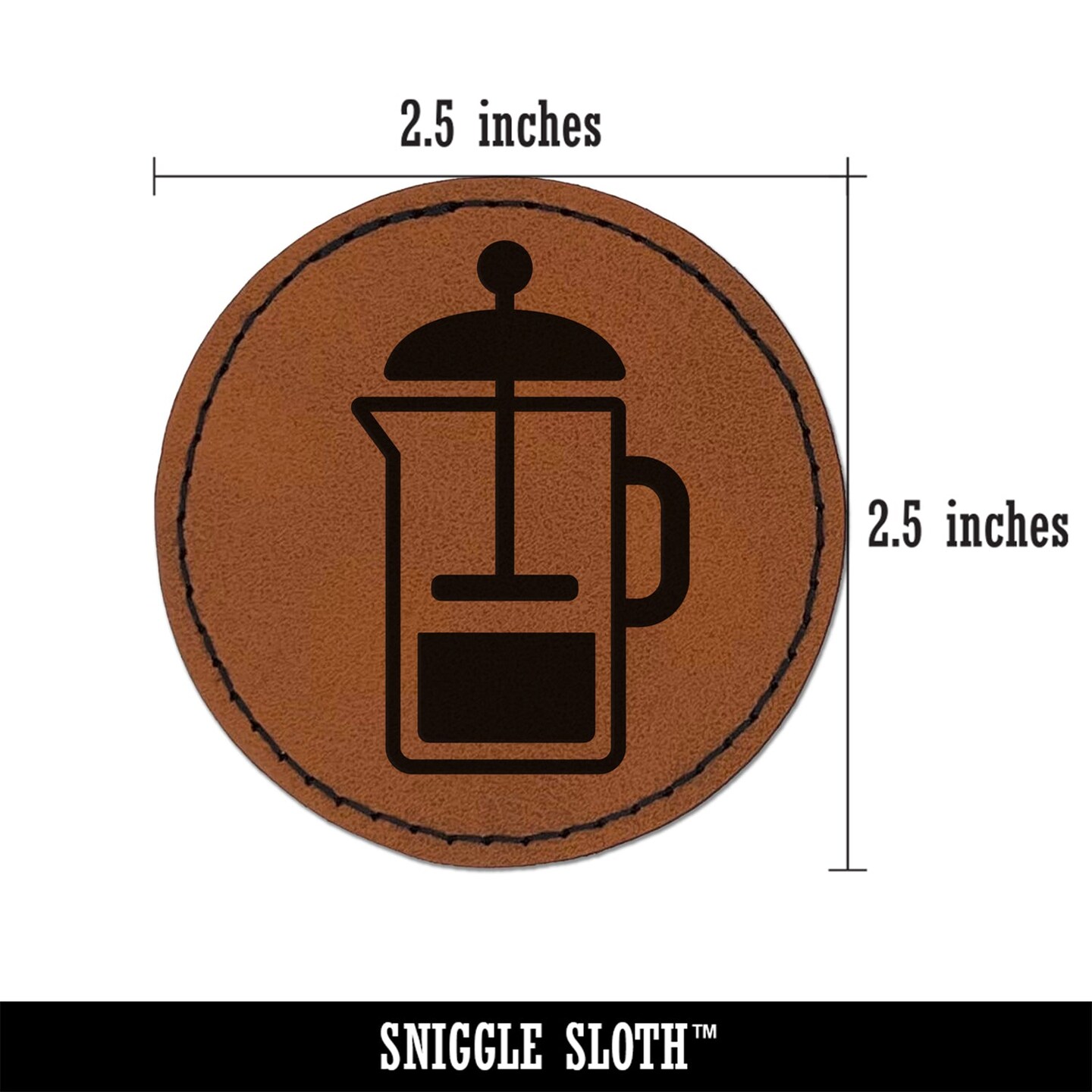 French Press Coffee Round Iron-On Engraved Faux Leather Patch Applique - 2.5"
