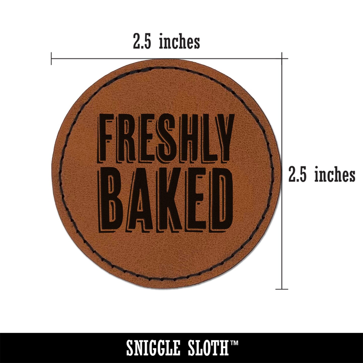 Freshly Baked Drop Shadow Text Round Iron-On Engraved Faux Leather Patch Applique - 2.5"