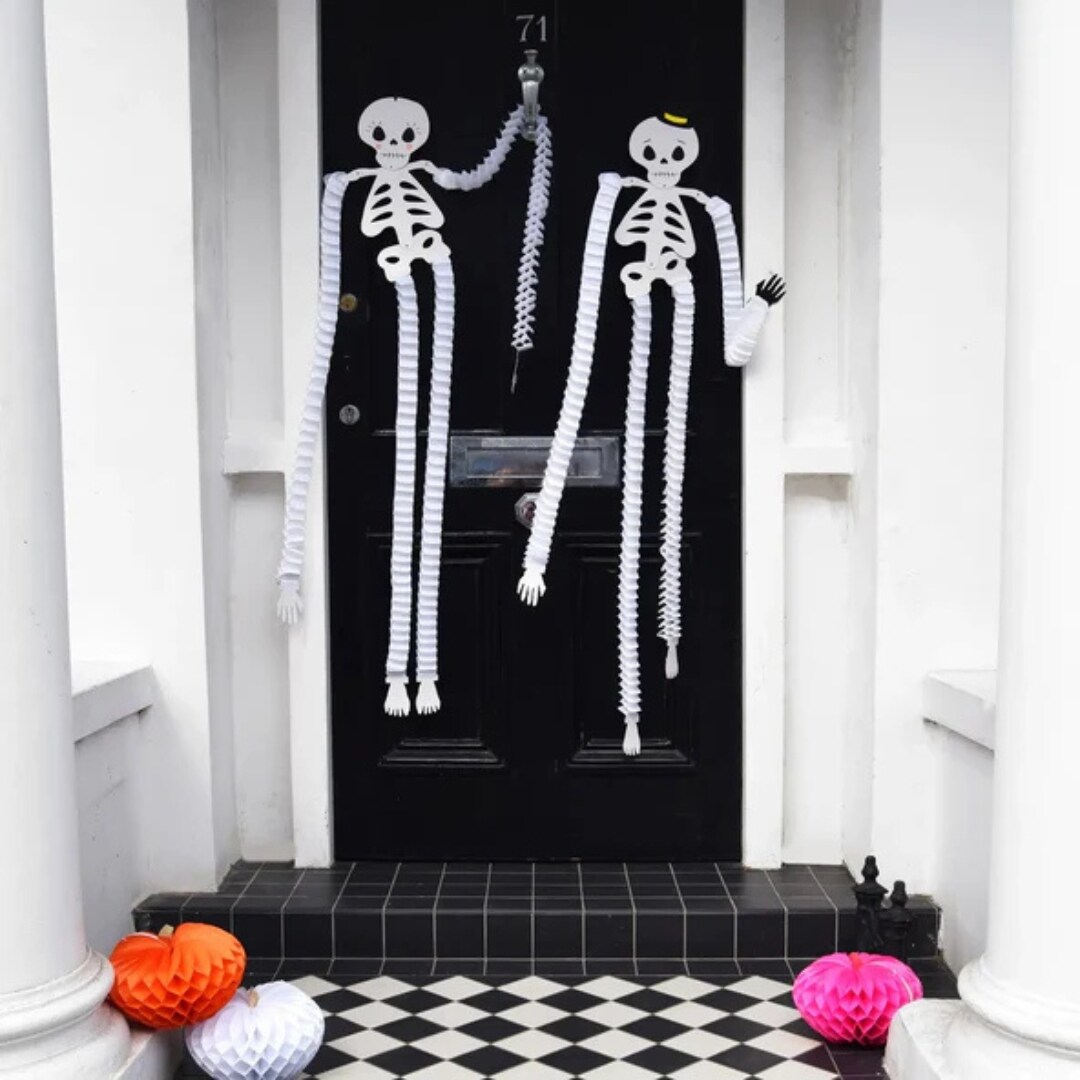 Friendly Skeleton Honeycomb Halloween Decorations – Non-Scary Kids & Family Party Décor, 2 Pack