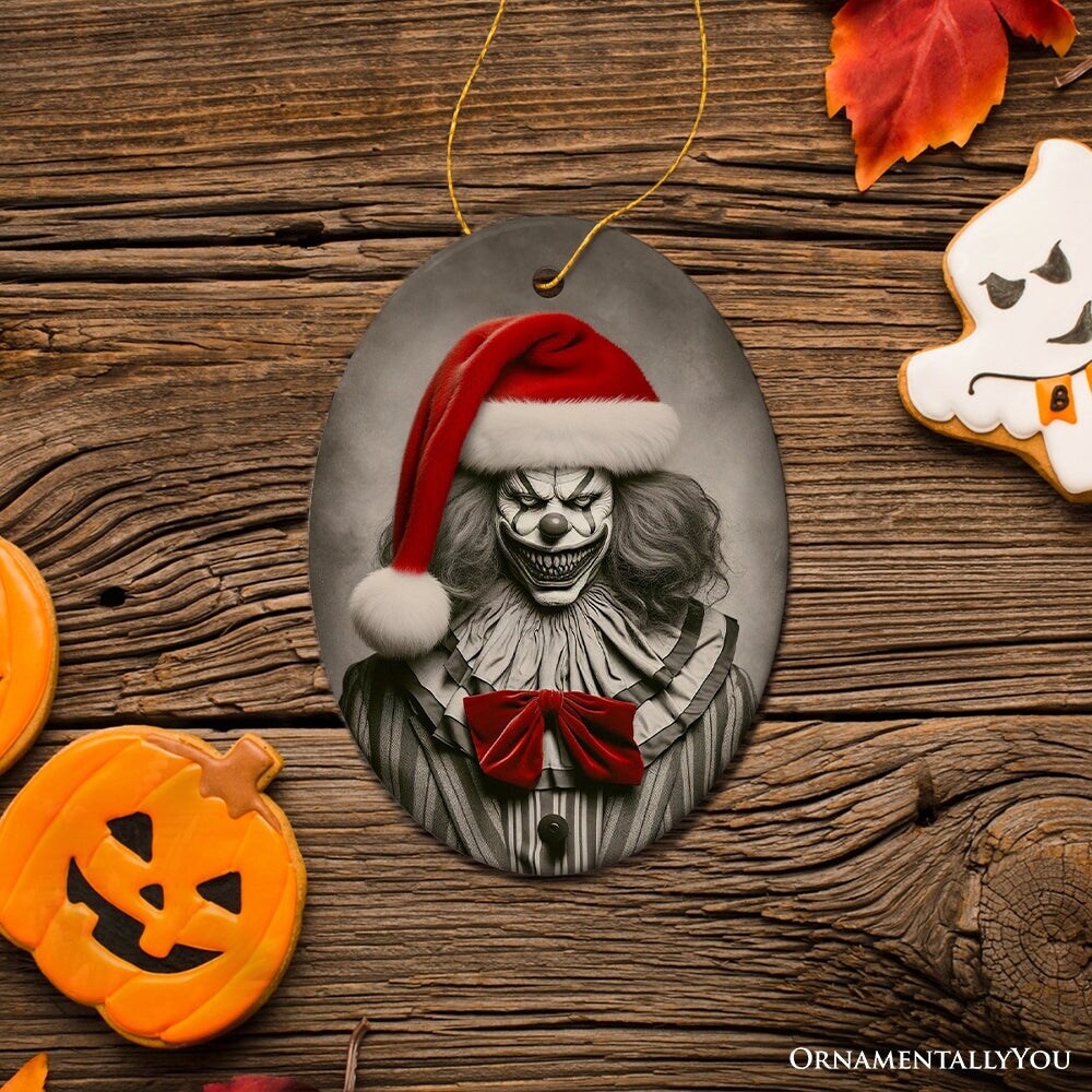 Frightening Clown with Santa Hat Ornament, Terrifying Holiday Keepsake for Spooky Tree Decor