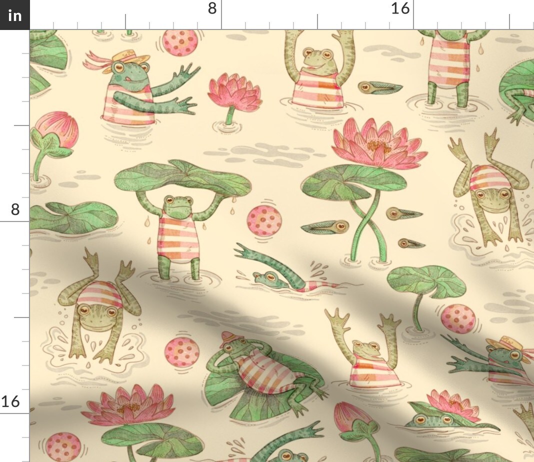 Frogs Pond Vintage Green Cute Nature Animal Cool Custom Printed Fabric by Spoonflower Various Fabrics by the Yard or Fat Quarter