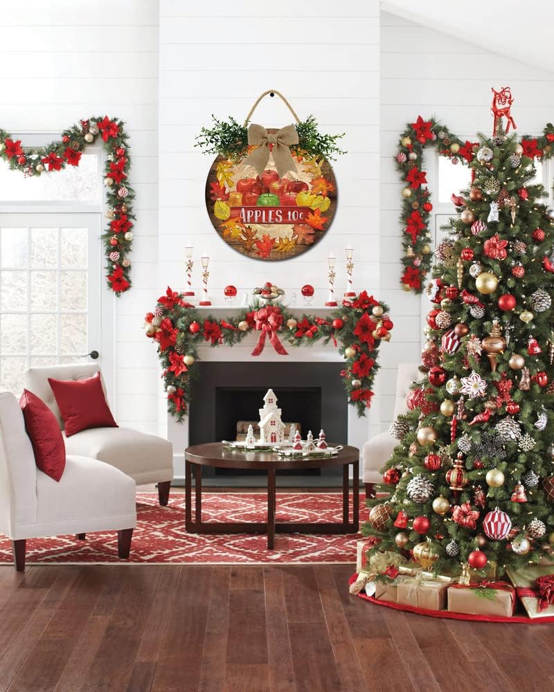 Front Door Porch Decorations Fall Apples Door Hanging Sign 12 inch