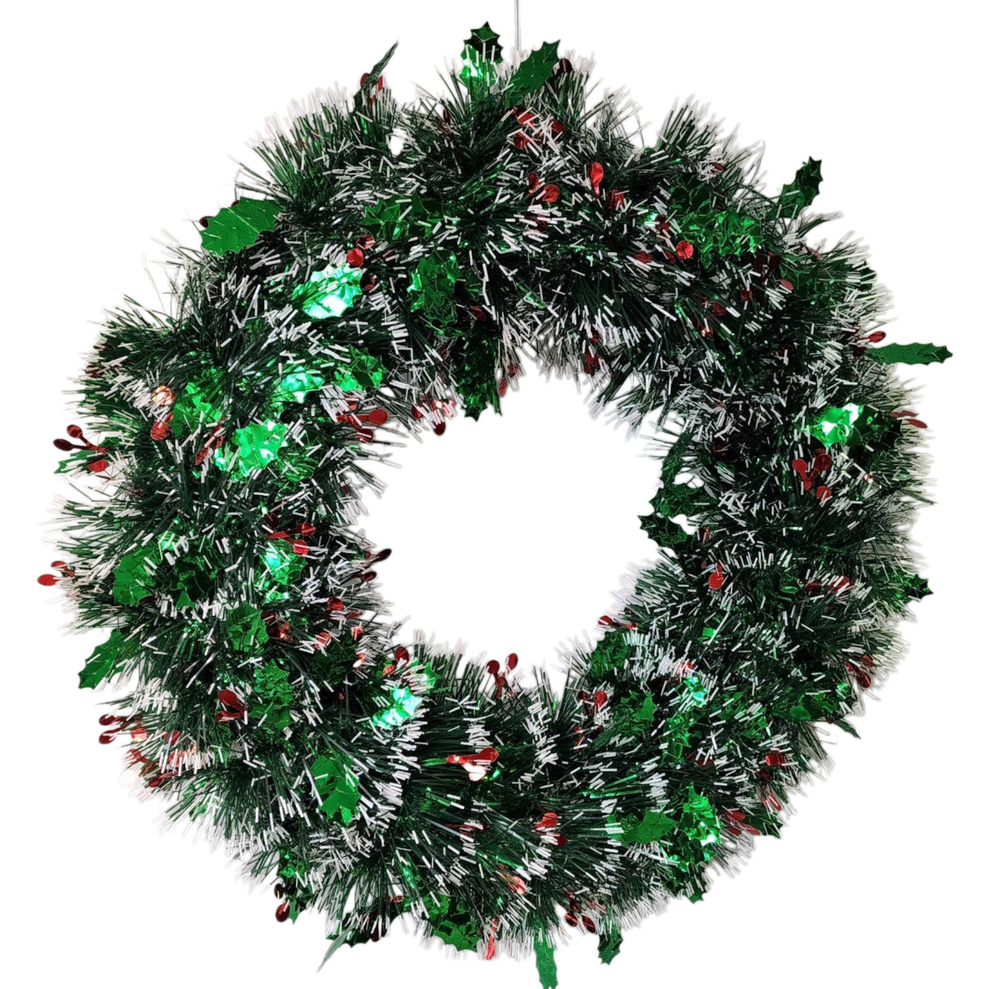 Frosted Holly Tinsel Wreath - 19"