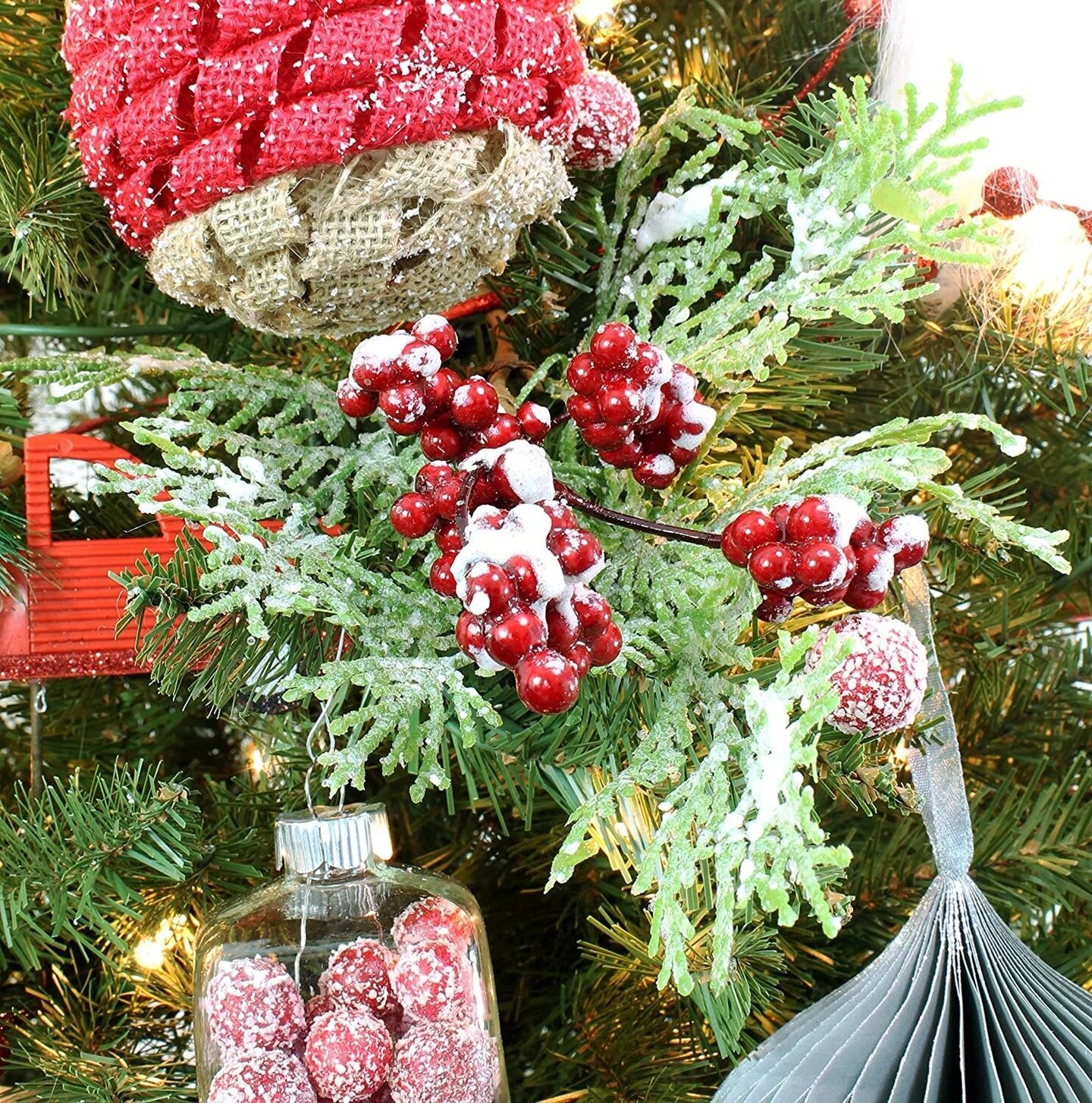 Frosted Red Berry Picks 3ct Christmas Greenery Floral Stems