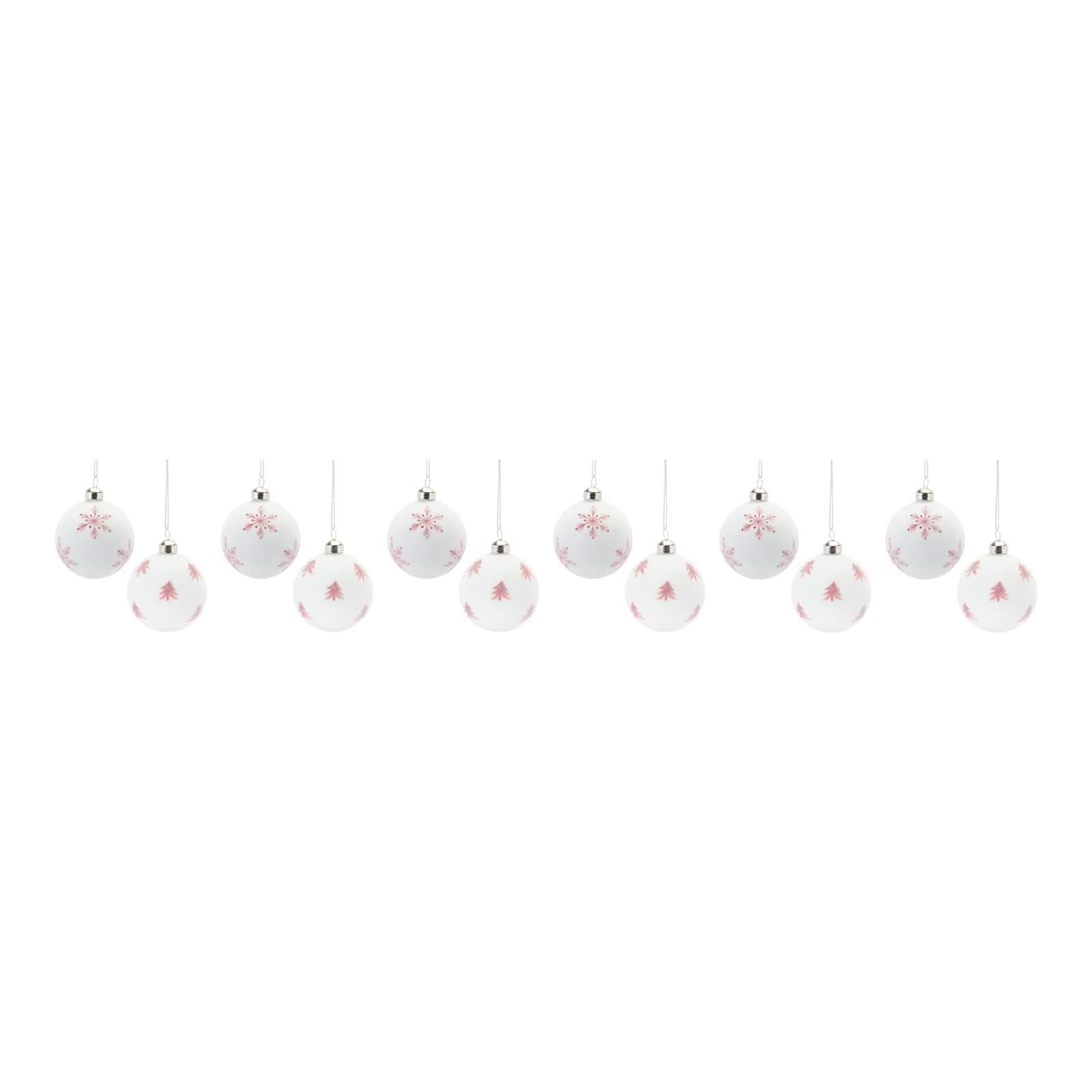 Frosted Snowflake & Tree Ball Ornament Set