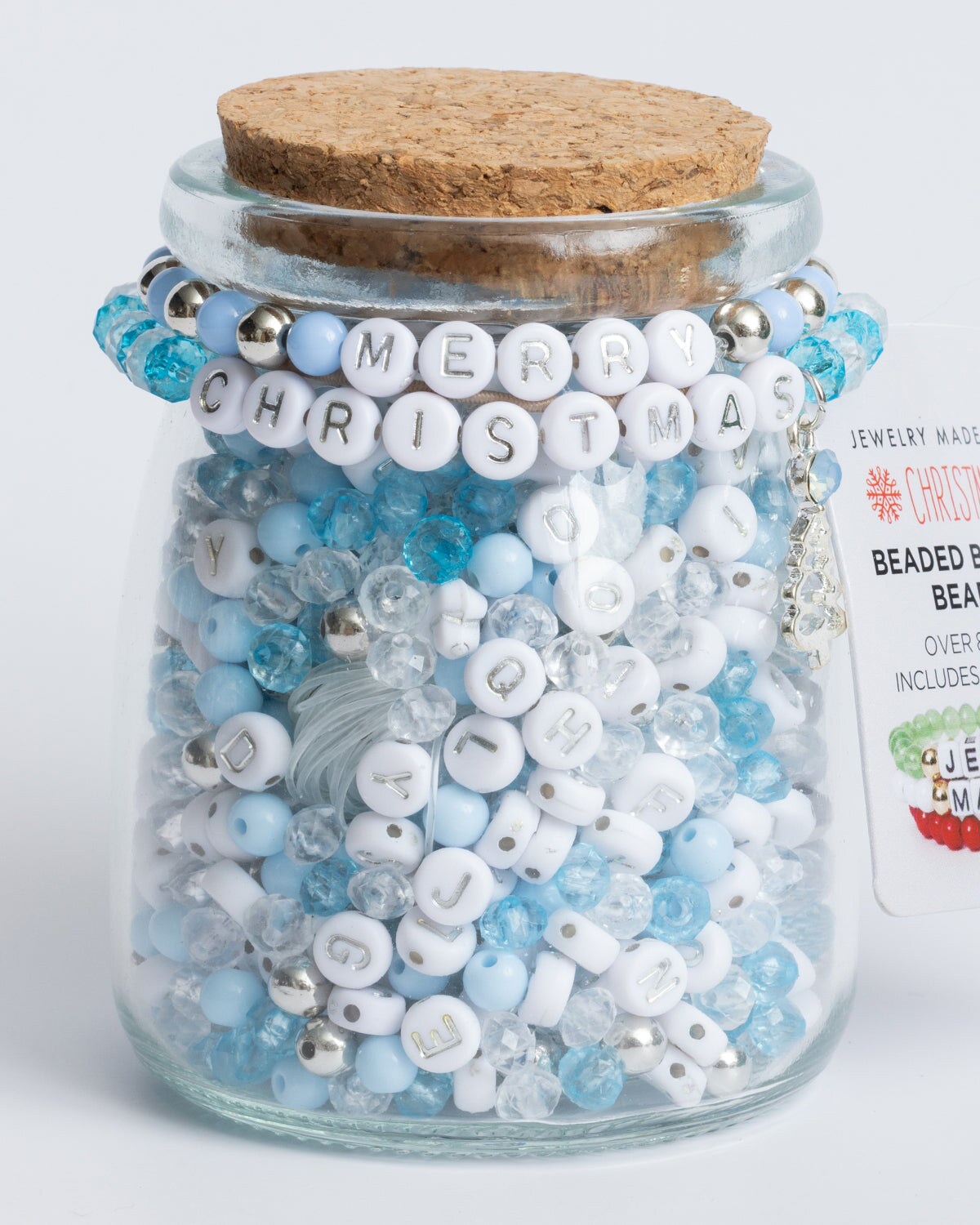 Frosty Blue and Metallic Silver Letter Christmas DIY Bead Jar